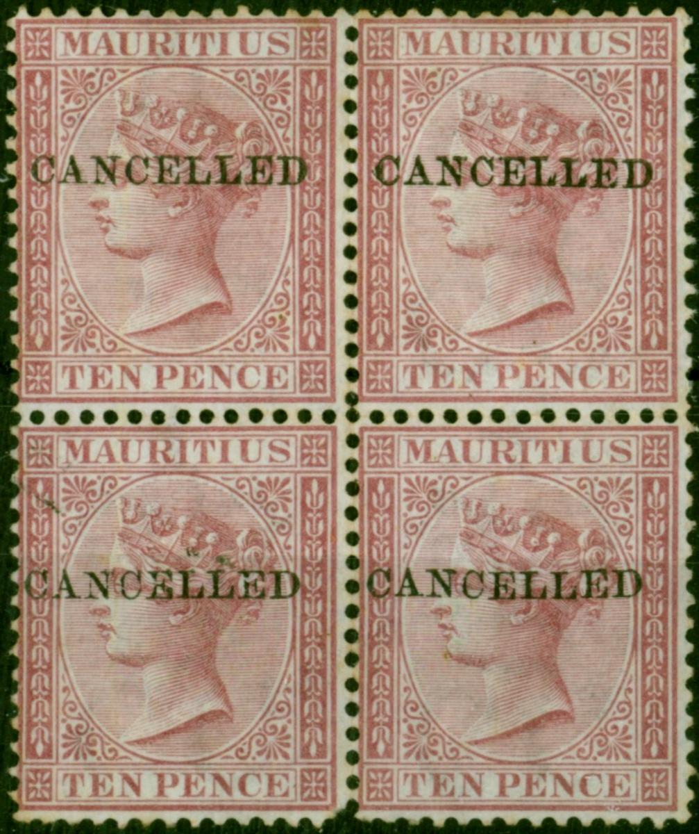 Mauritius 1872 10d Margin SG67 Cancelled Fine LMM Block of 4