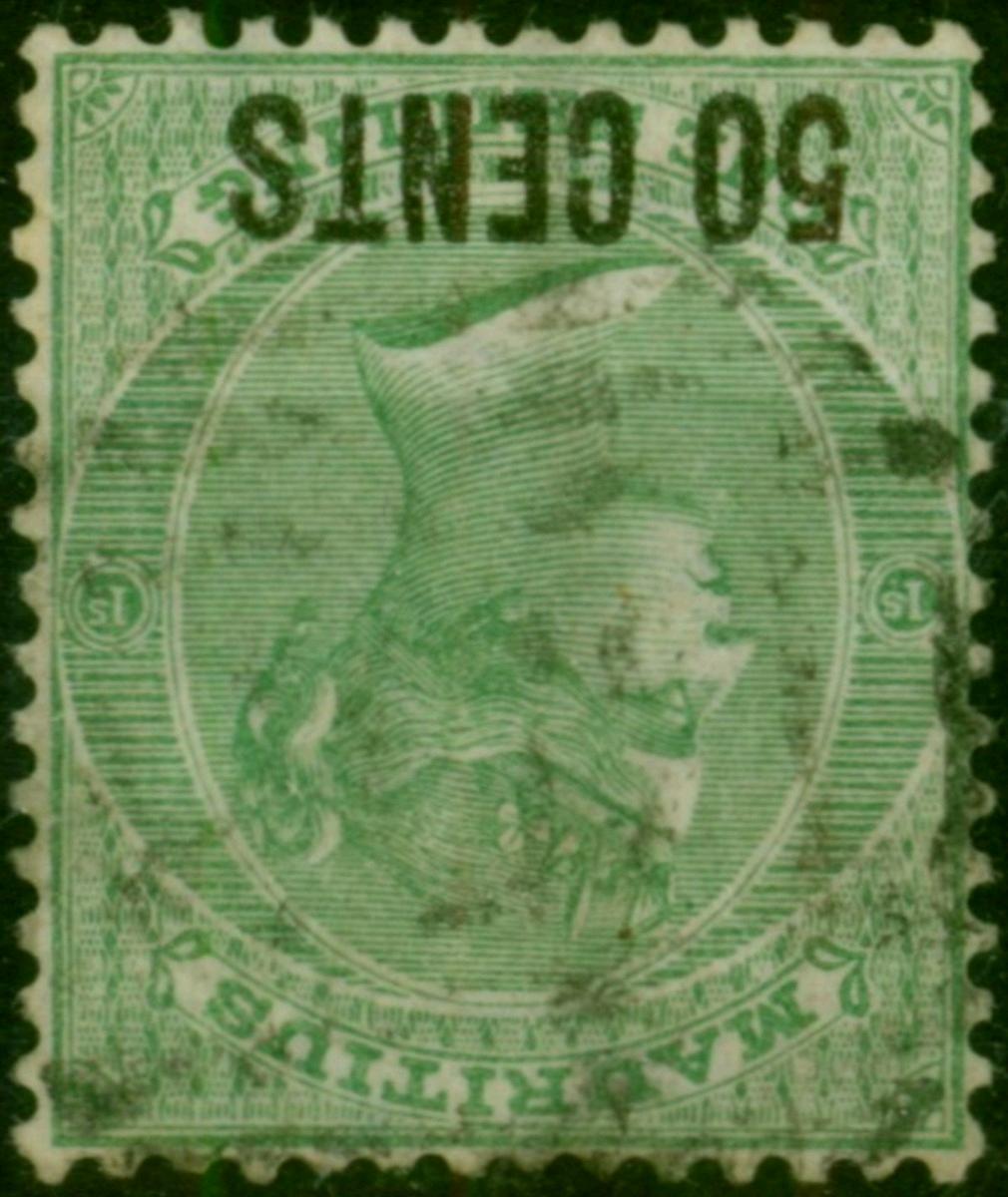 Mauritius 1878 50c on 1s Green SG90w 'Wmk Inverted' Fine Used