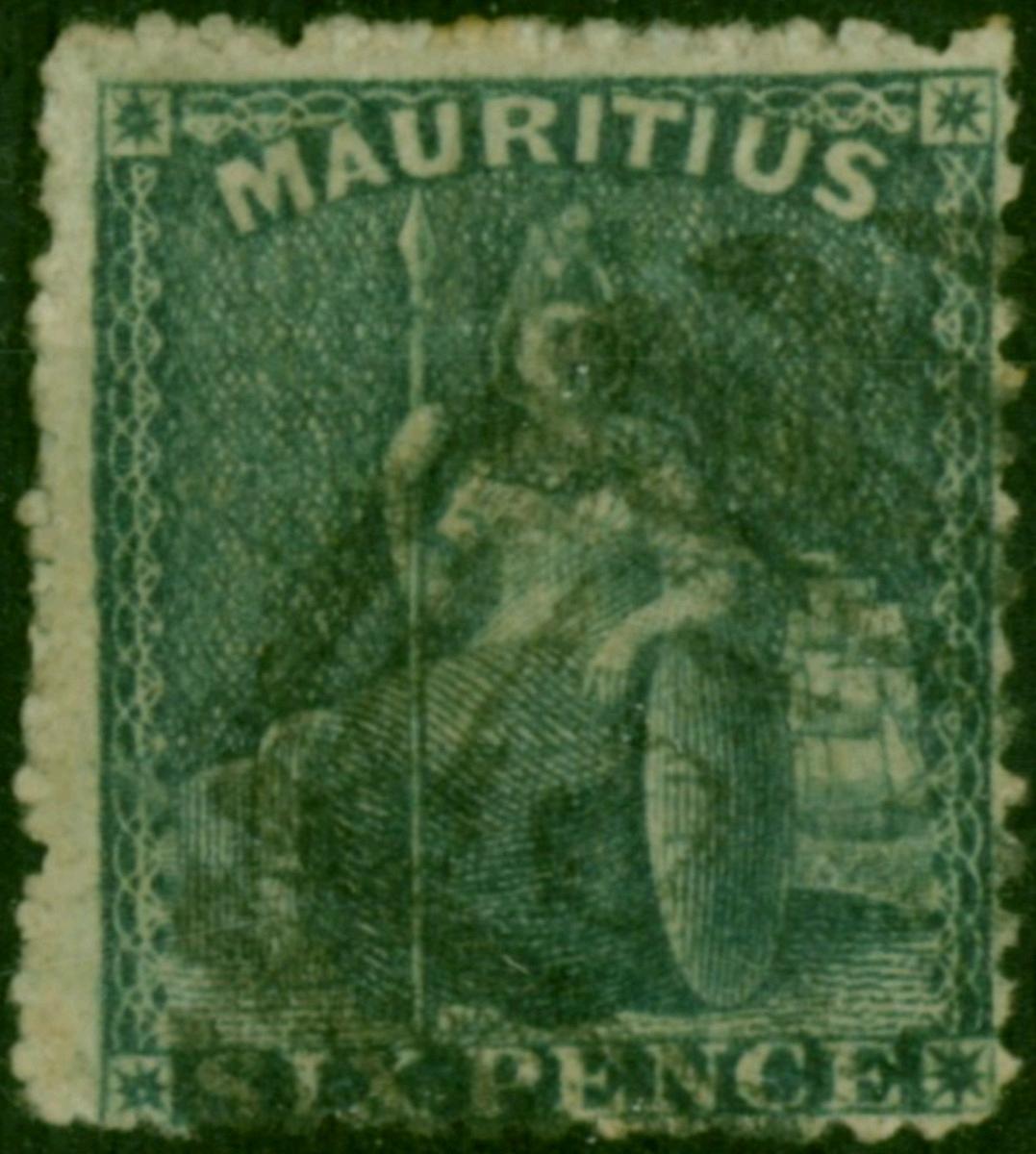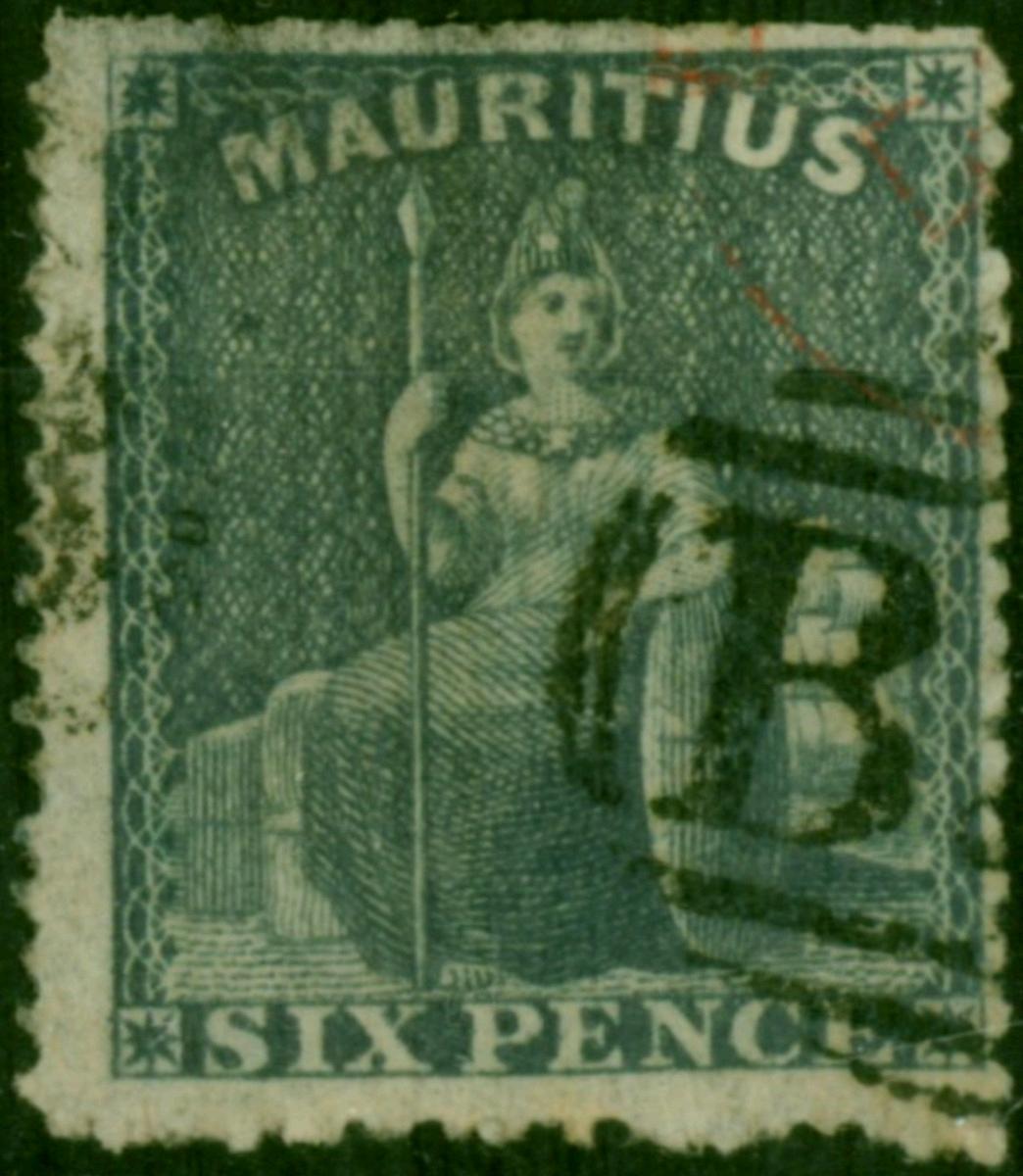 Mauritius 1862 6d Slate SG54 Good Used Thin
