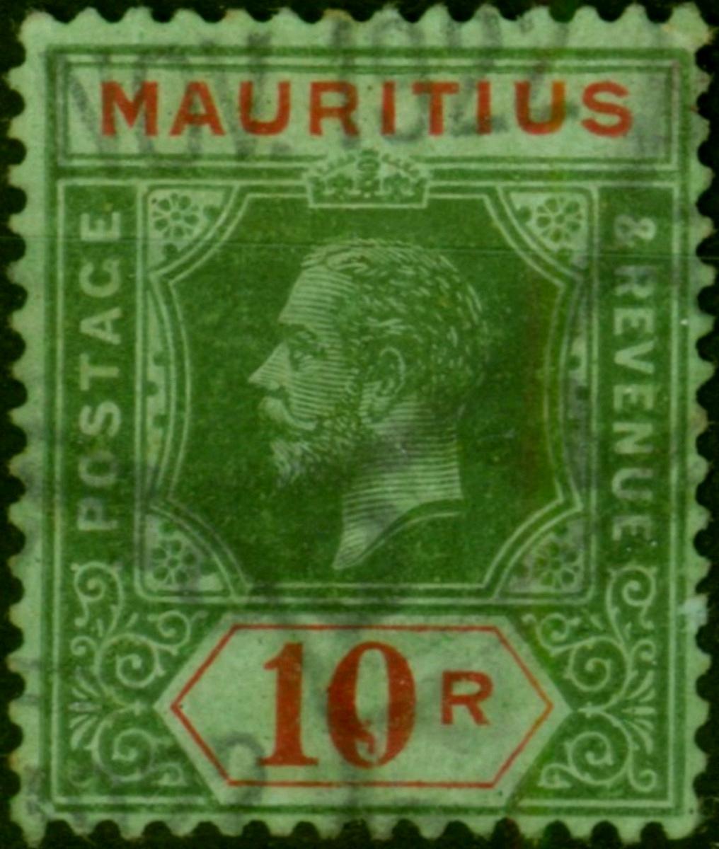 Mauritius 1921 10R on Emerald, Emerald Back SG204c Good Used