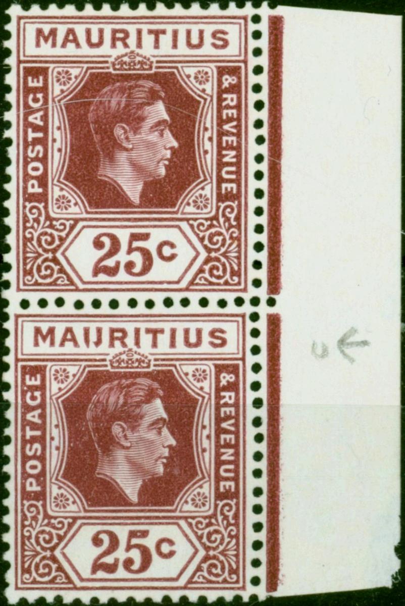 Mauritius 1941 25c Brown-Purple SG259ba 'U Flaw' V.F MNH in Pair