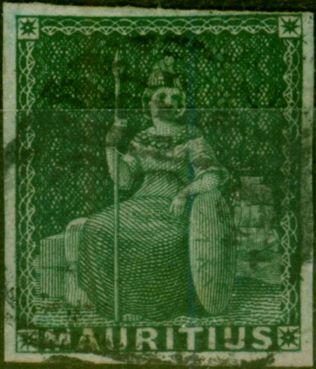 Mauritius 1858 (4d) Green SG27 Good Used (2)