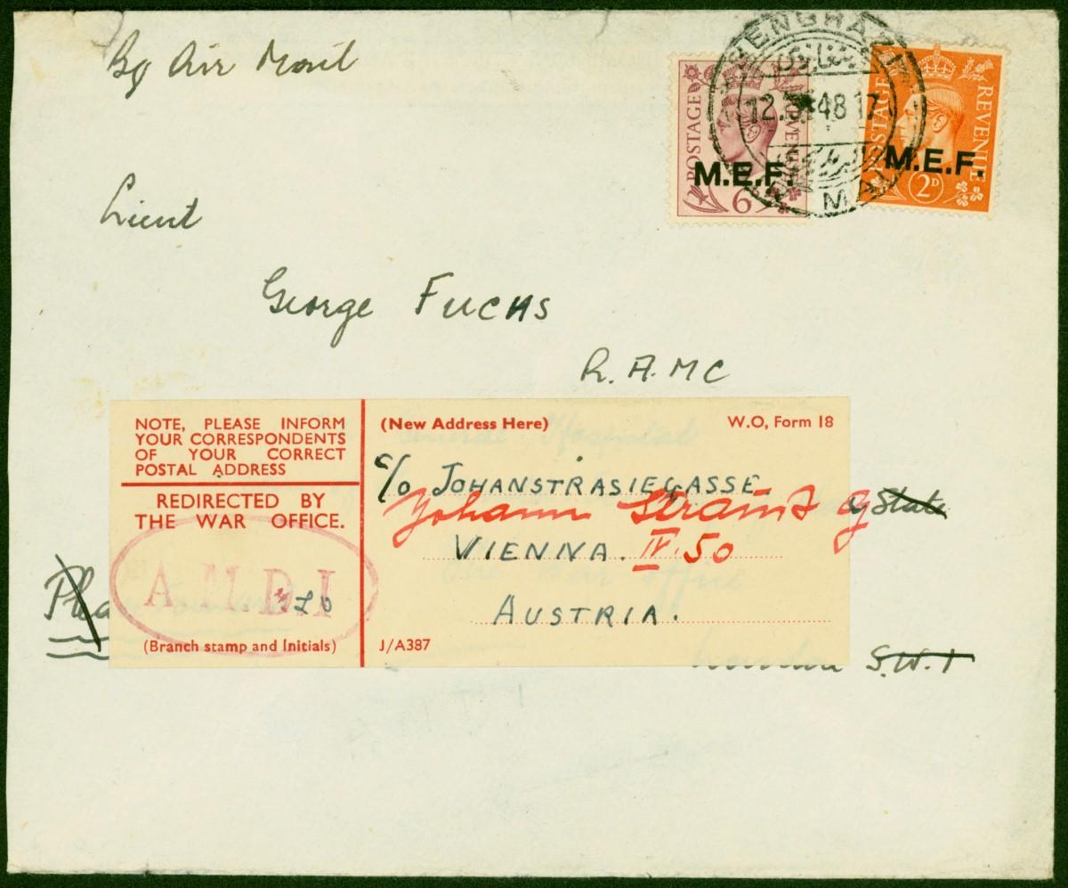 M.E.F 1948 Airmail Cover Benghazi to London Redirected to Austria From War Office