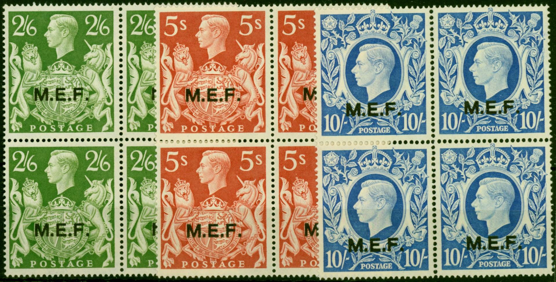 Middle East Forces 1943-47 Set of 3 Top Values SGM19-M21 Superb MNH Blocks of 4