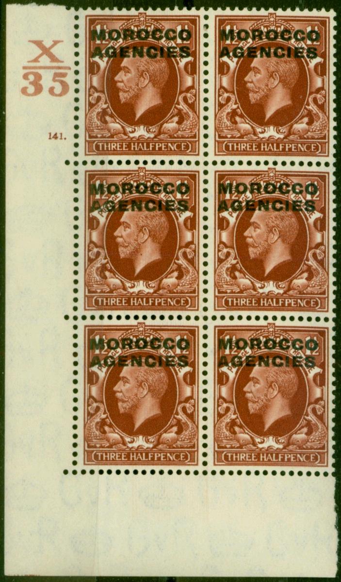 Morocco Agencies 1935 1 1/2d RedBrown SG67 V.F MNH Block CTL X35 CYL 141 Dot