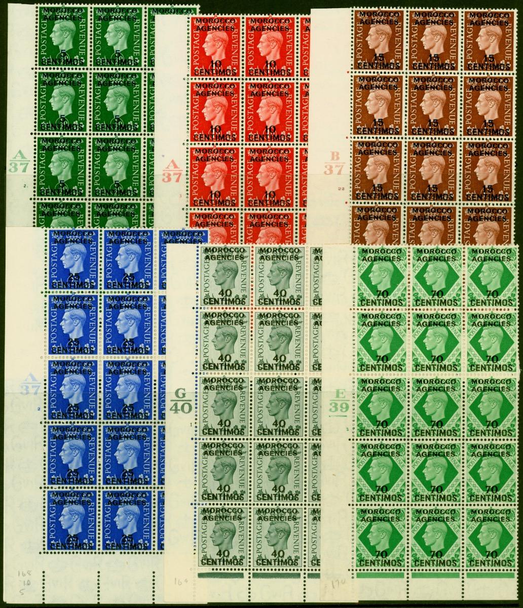 Morocco Agencies 1939-40 Set of 6 to 70c SG165-170 in V.F MNH Control Corner Blocks of 15