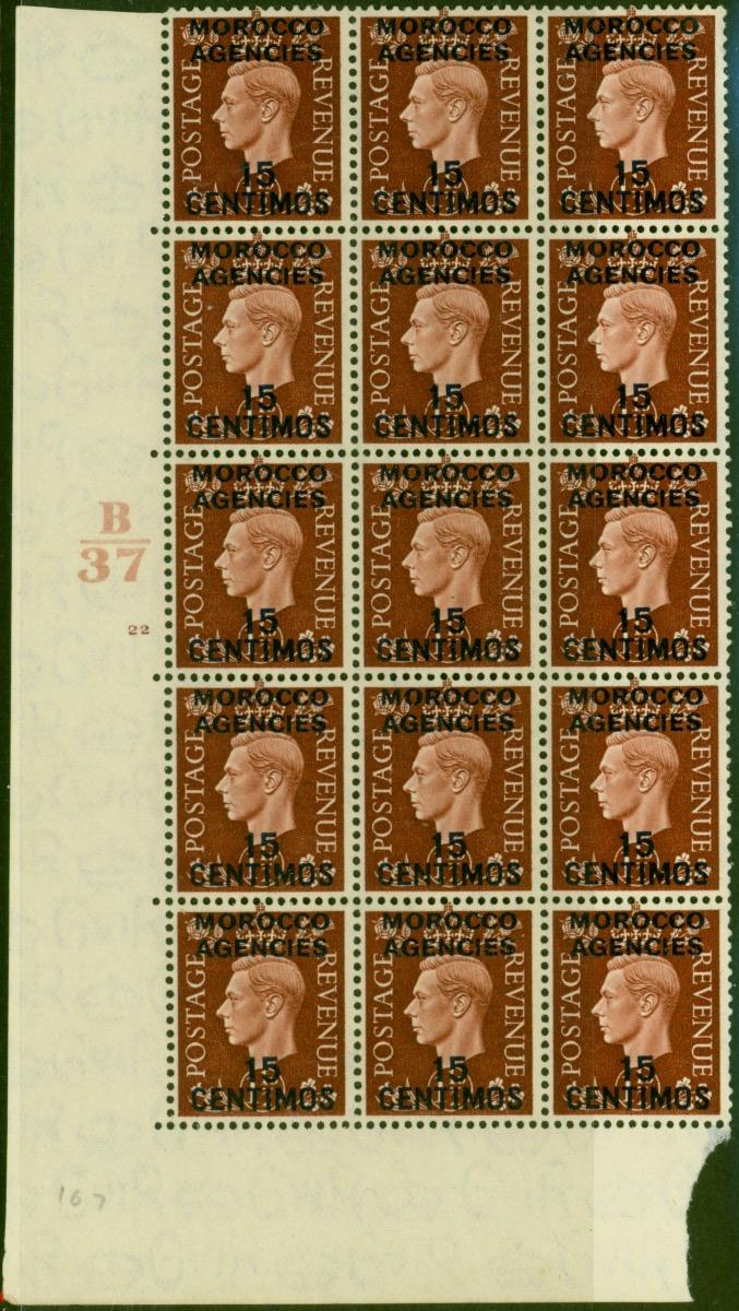 Morocco Agencies 1935 15c on 1 1/2d Red-Brown SG218 V.F MNH Block CTL X35 CYL 132 Dot