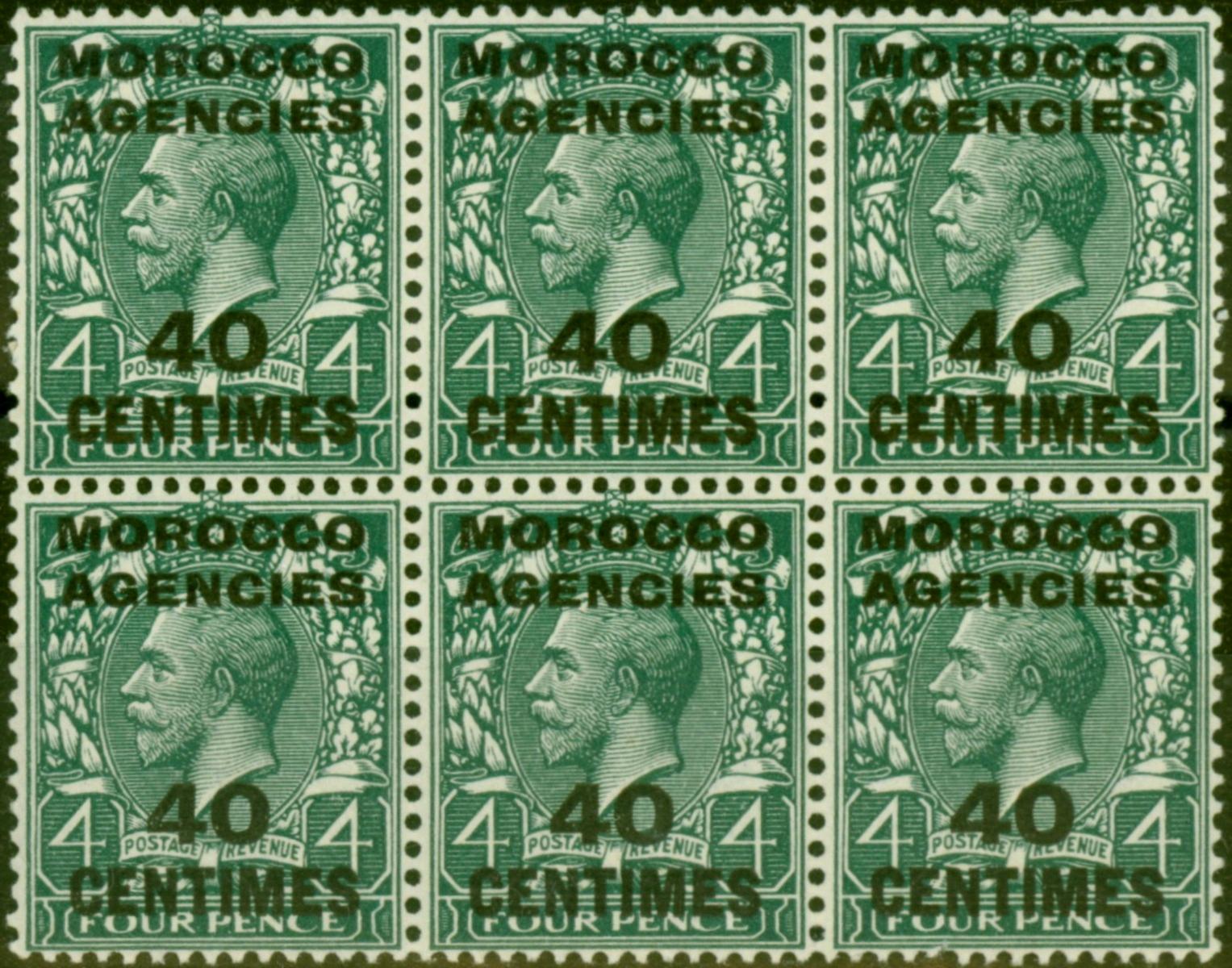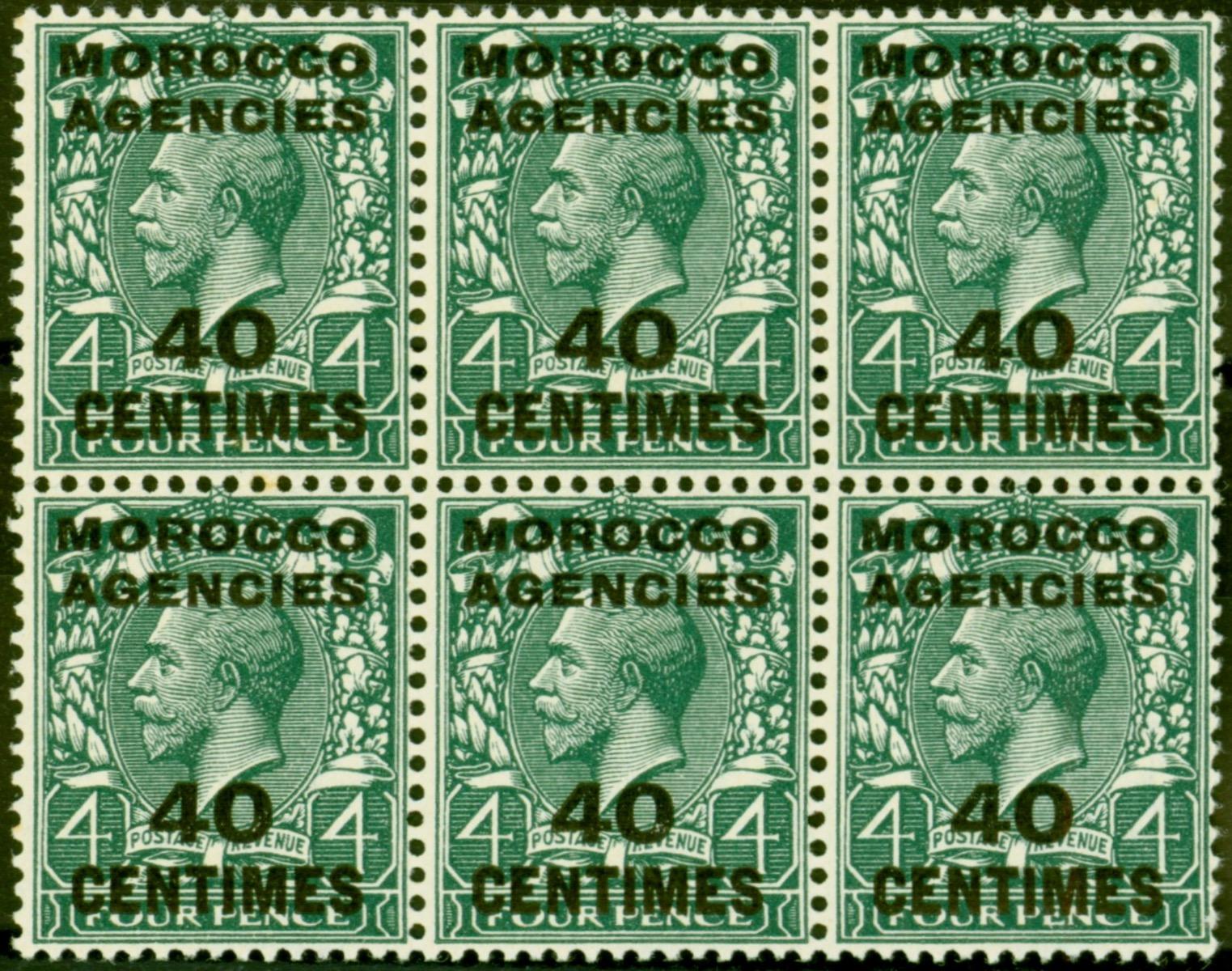 Morocco Agencies 1917 40c on 4d Slate-Green SG196 V.F MNH Block of 6