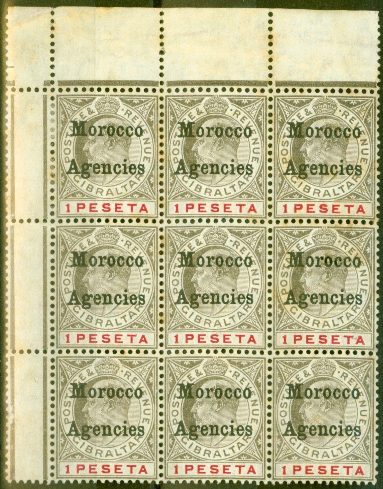 Morocco Agencies 1905 1p Black & Carmine SG29 Ave MNH Block of 9