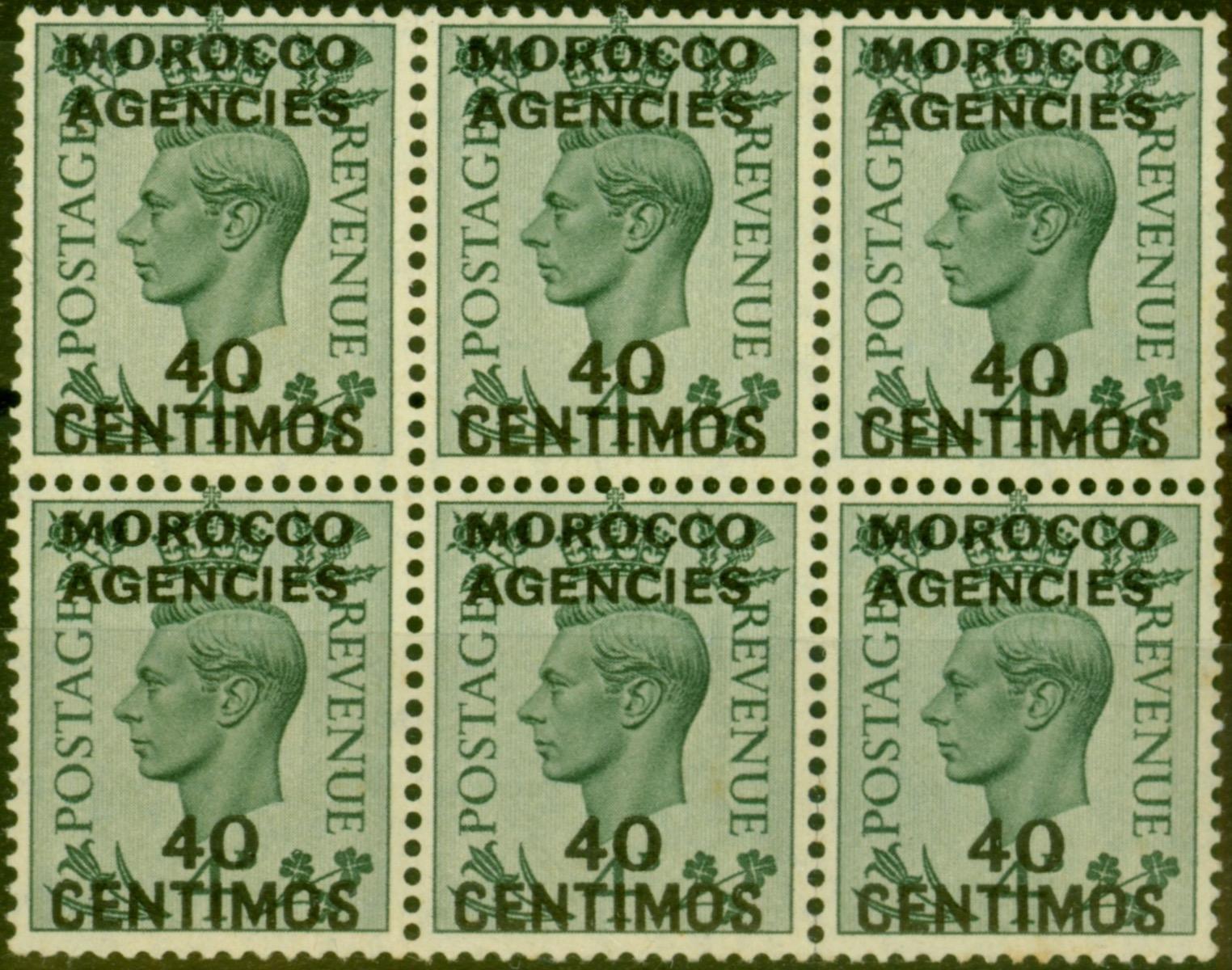 Morocco Agencies 1940 40c on 4d Grey-Green SG169 Fine MNH Block of 6