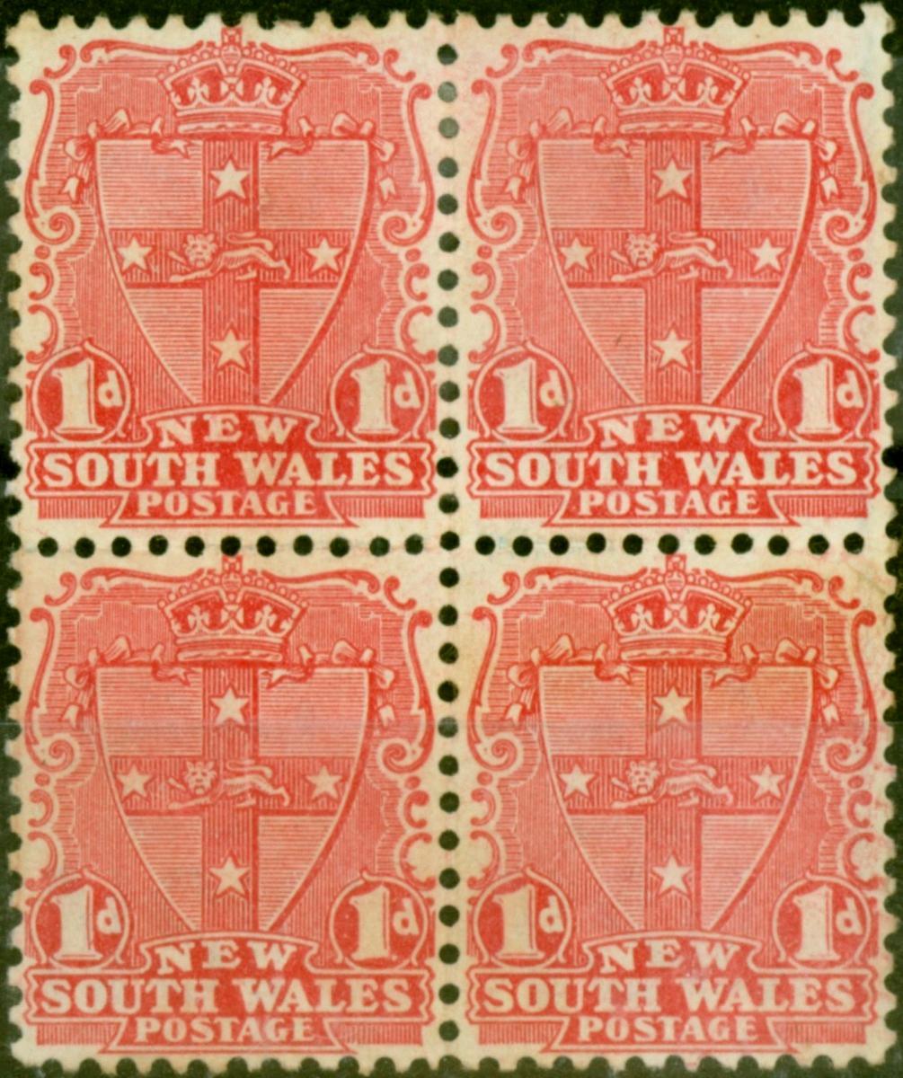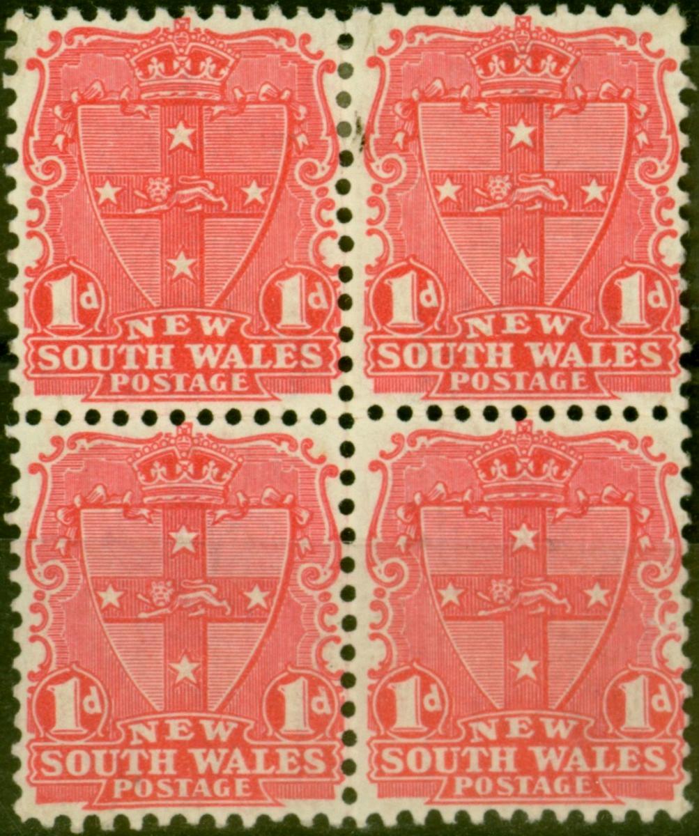 N.S.W 1897 1d Carmine SG290a Die II Good MM Block of 4