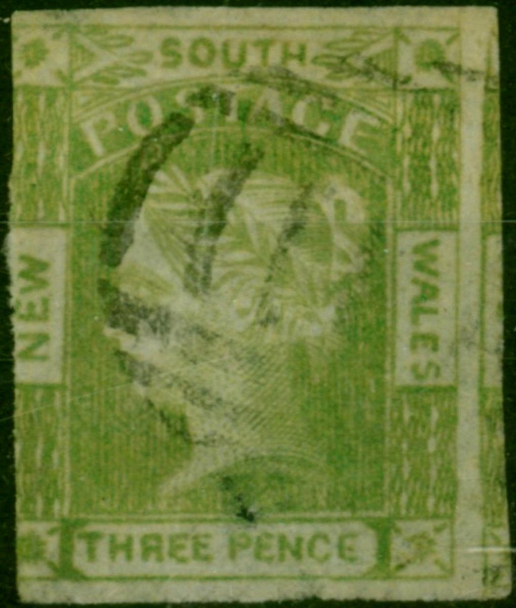 N.S.W 1852 3d Dull Yellow-Green SG67 Ave Used Heavy Thins