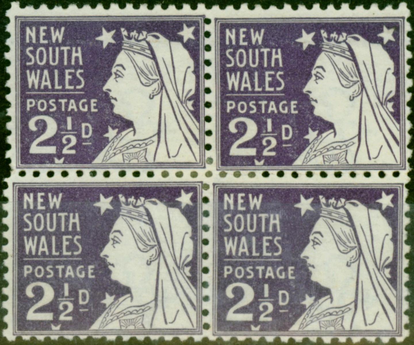 N.S.W 1897 2 1/2d Purple SG295a P.11.5 x 12 Fine MM Block of 4