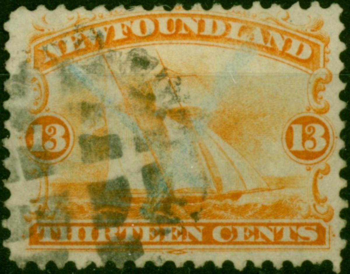 Newfoundland 1865 13c OrangeYellow SG29 Fine Used