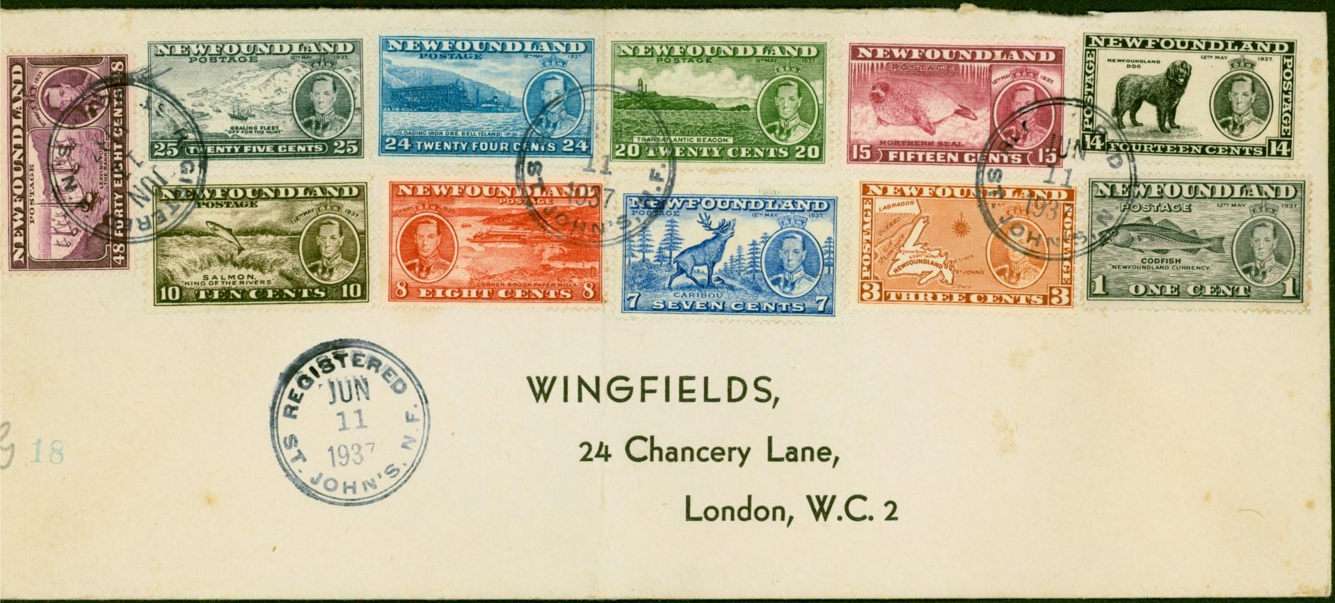 Newfoundland 1937 Coronation Set of 11 SG257-267 Reg Cover to London
