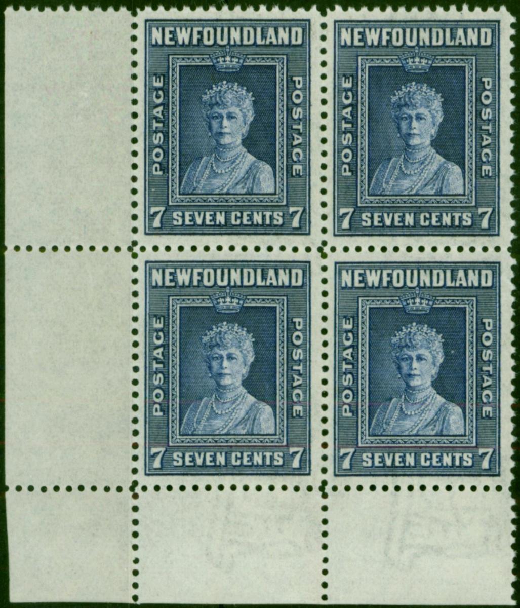 Newfoundland 1943 7c Deep Ultramarine SG281 V.F MNH Corner Block of 4