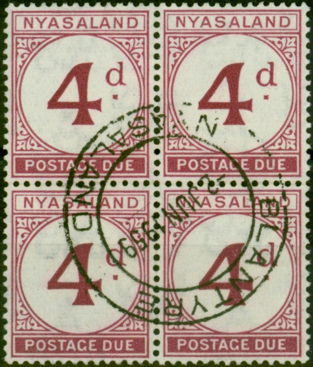 Nyasaland 1950 4d Purple SGD4 V.F.U Block of 4