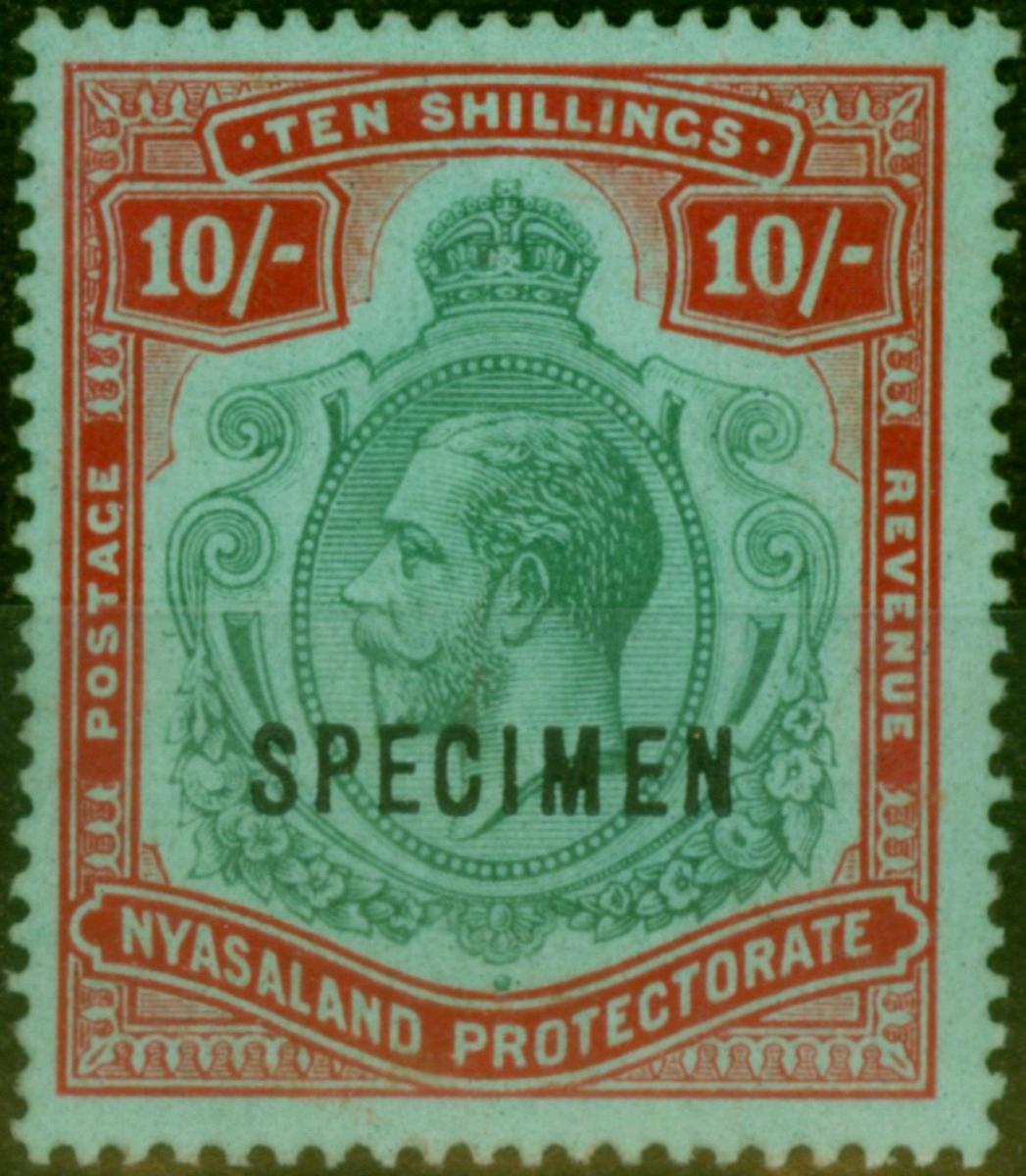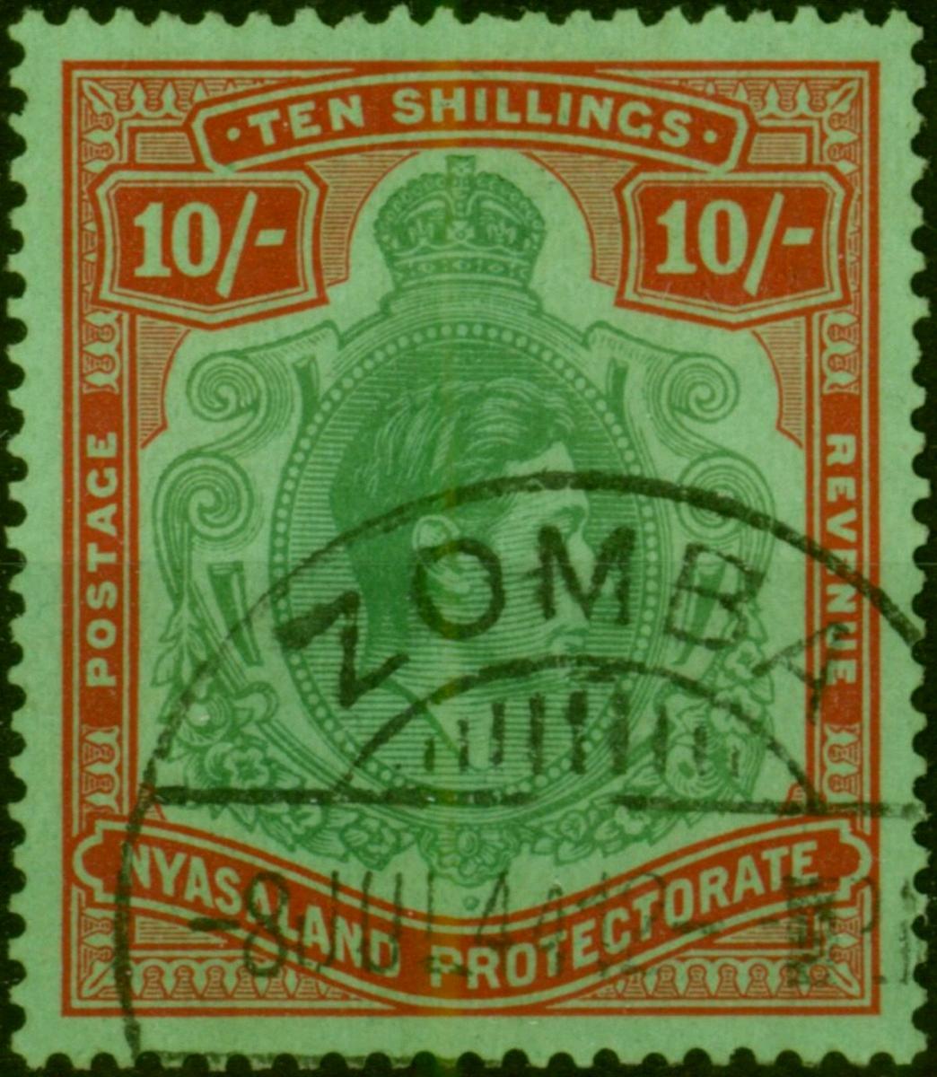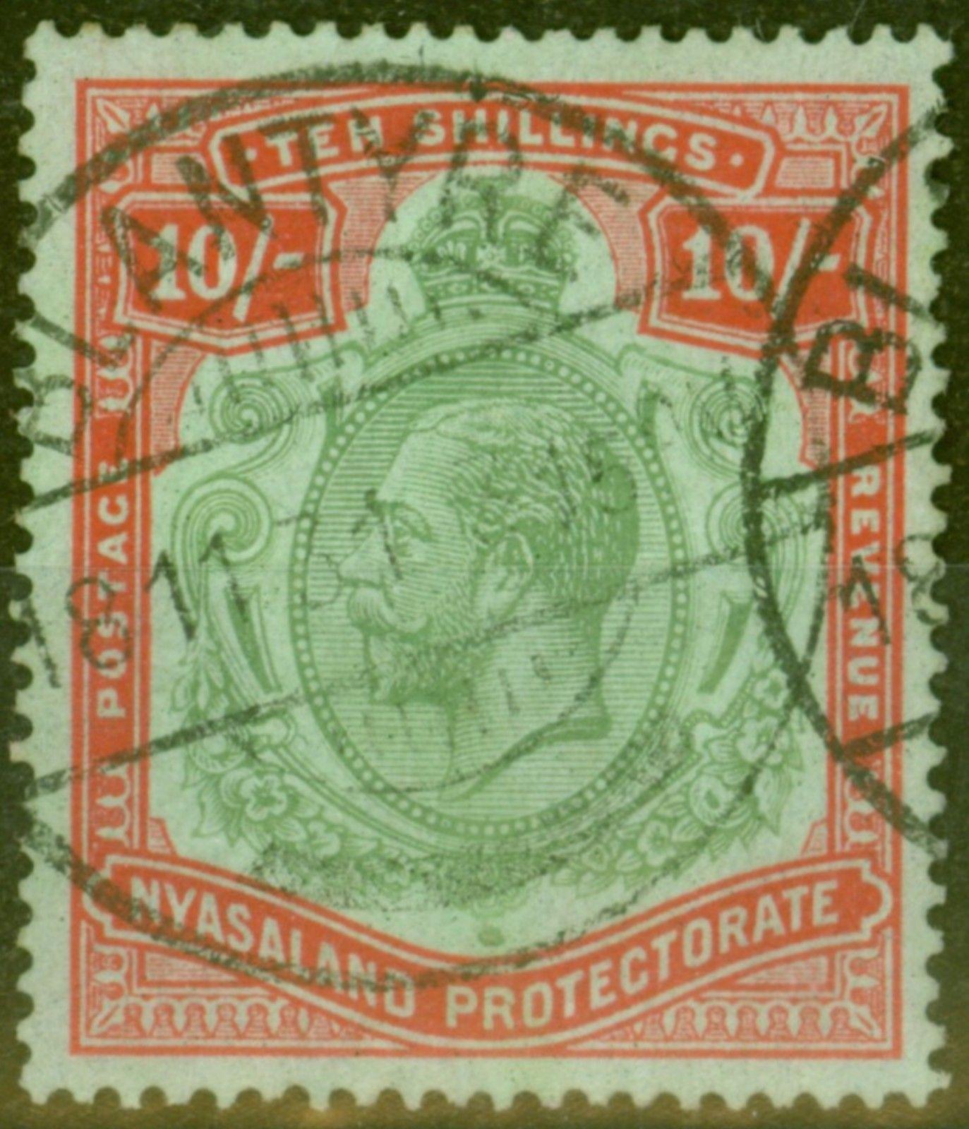 Nyasaland 1926 10s Grn & Red-Pale Emerald SG113c Scarce