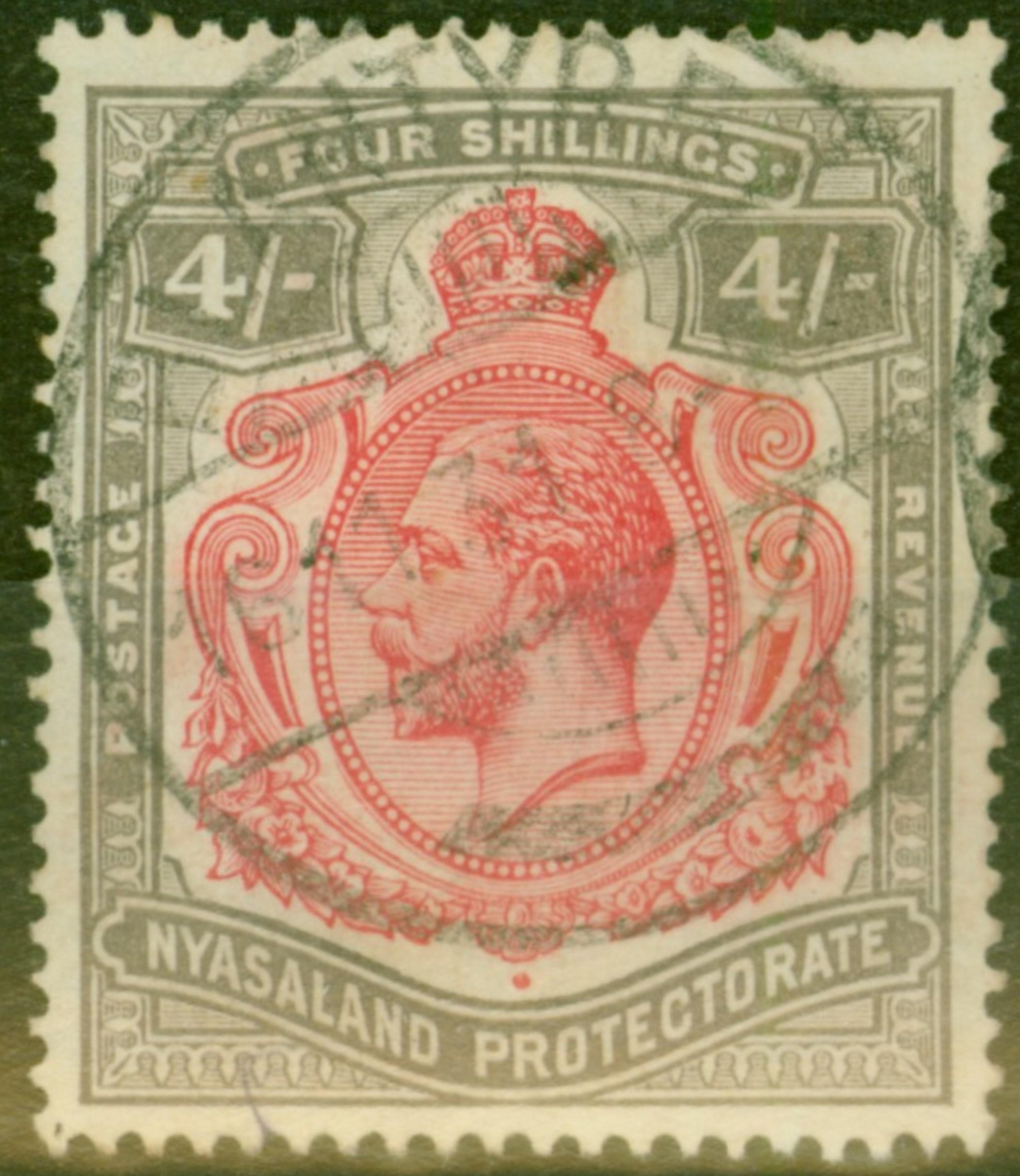 Nyasaland 1927 4s Carmine & Black SG111f 'Damaged Leaf Bottom Right' Good Used