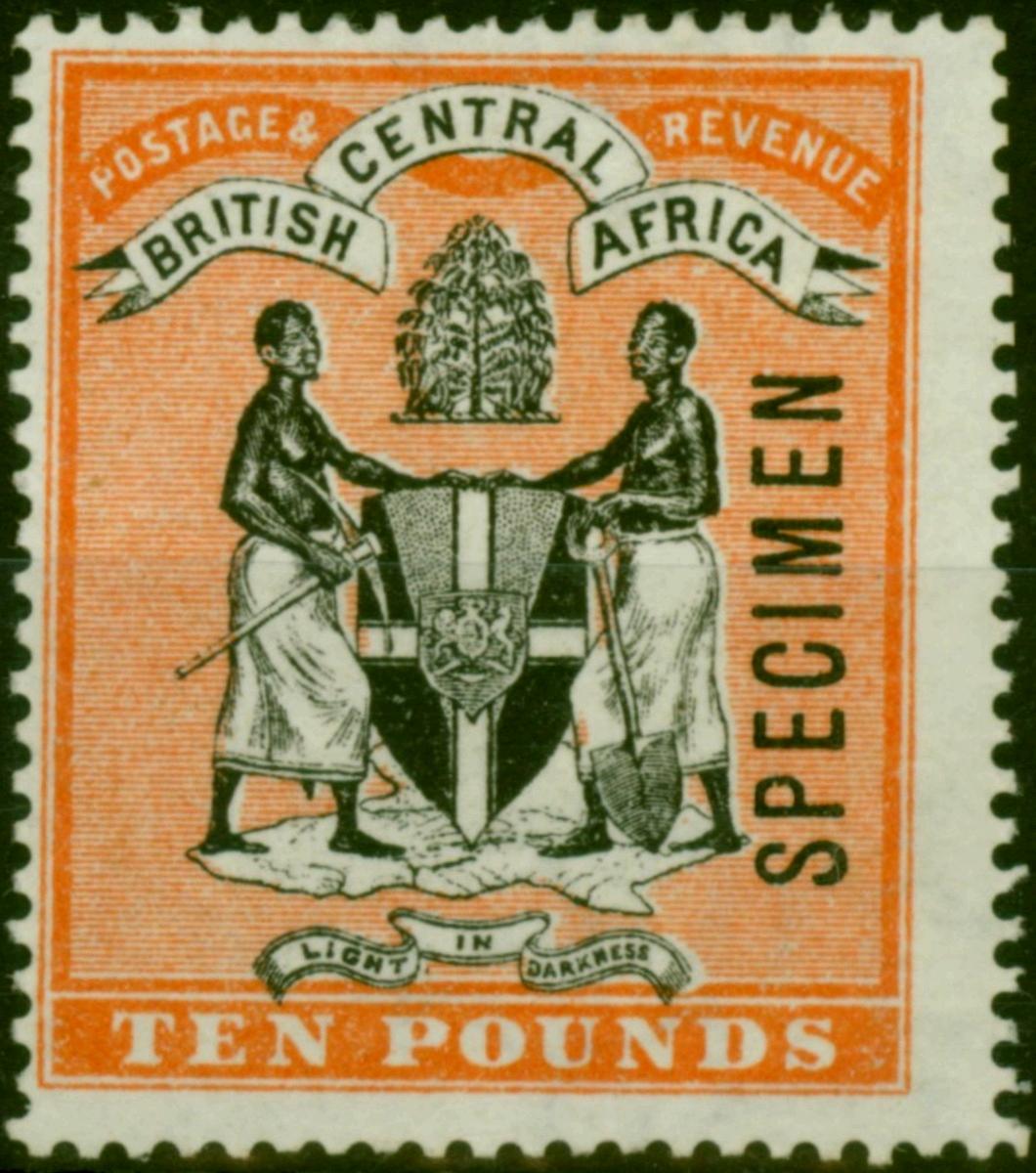B.C.A Nyasaland 1896 £10 Black & Orange Specimen SG41s Fine & Fresh MM