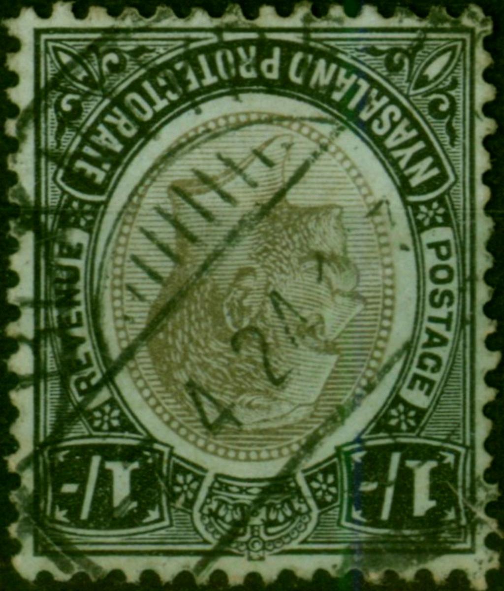 Nyasaland 1913 1s Black-Green SG93aw 'Wmk Inverted' Fine Used Scarce