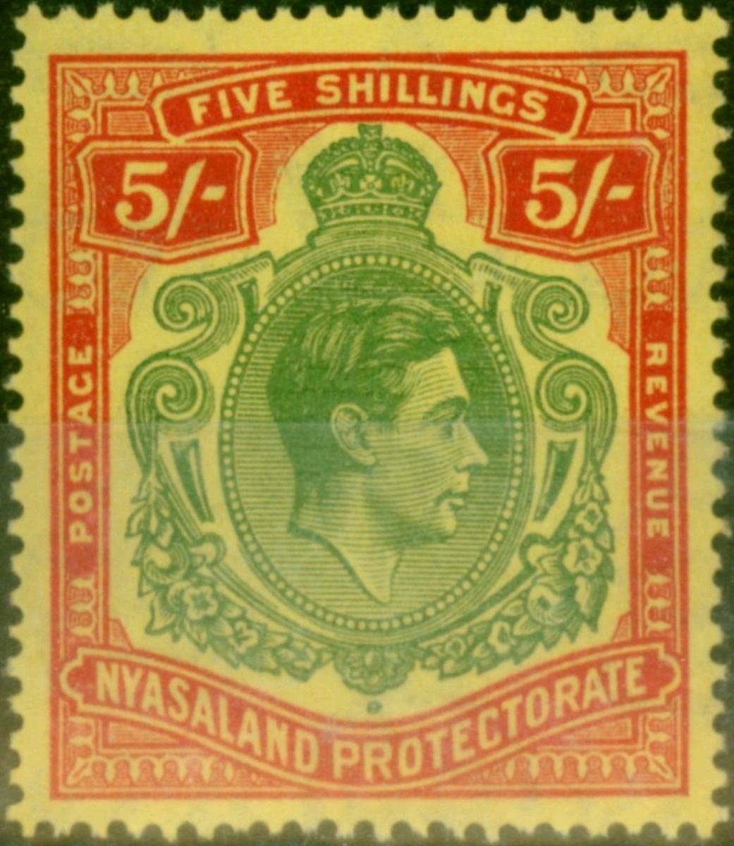 Nyasaland 1944 5s Green & Red-Pale Yellow SG141a Ordin Paper Fine & Fresh LMM