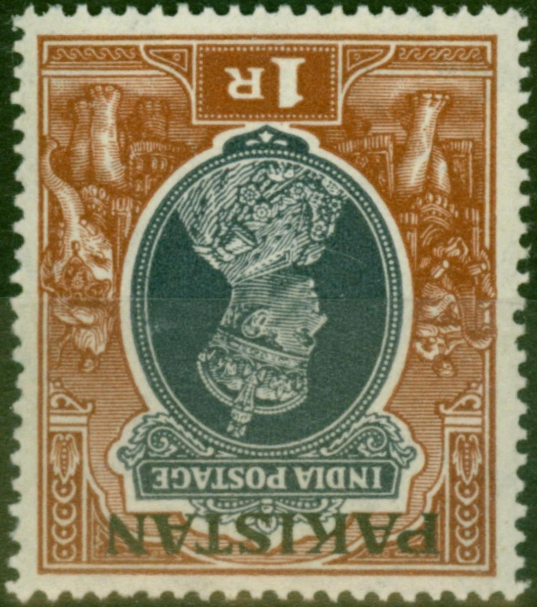 Pakistan 1947 1R Grey & Red-Brown SG14w Wmk Inverted Fine & Fresh LMM