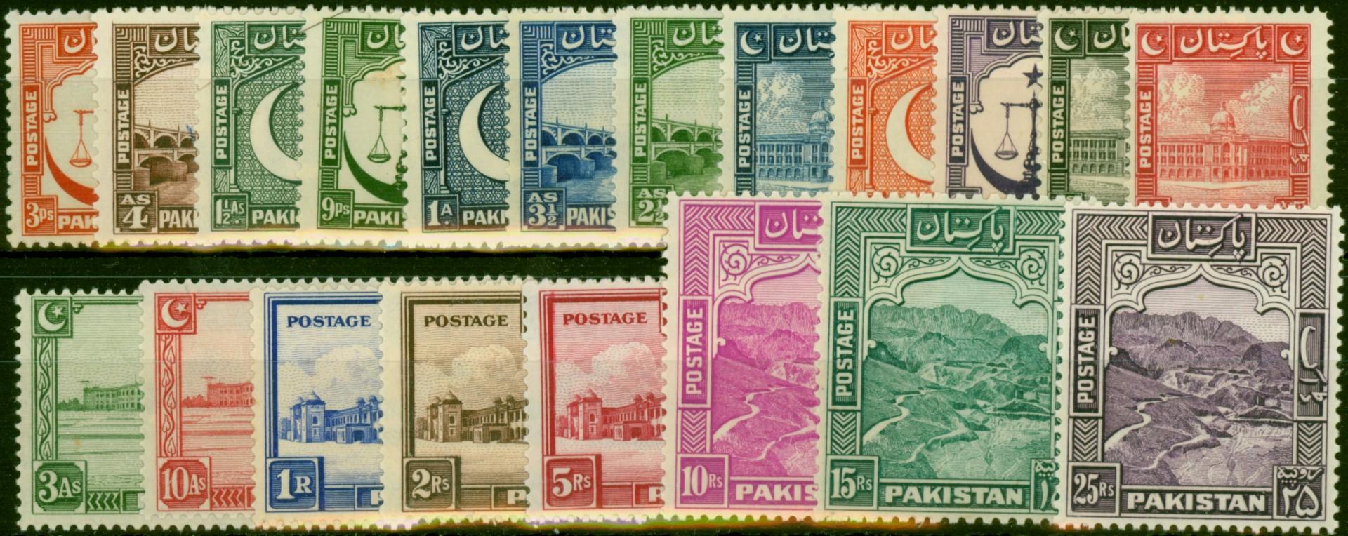 Pakistan 1948 Set of 20 SG24-43b Clear White Gum V.F MNH