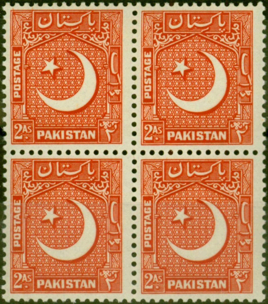 Pakistan 1925 2a Red SG46a P.13.5 V.F MNH Block of 4
