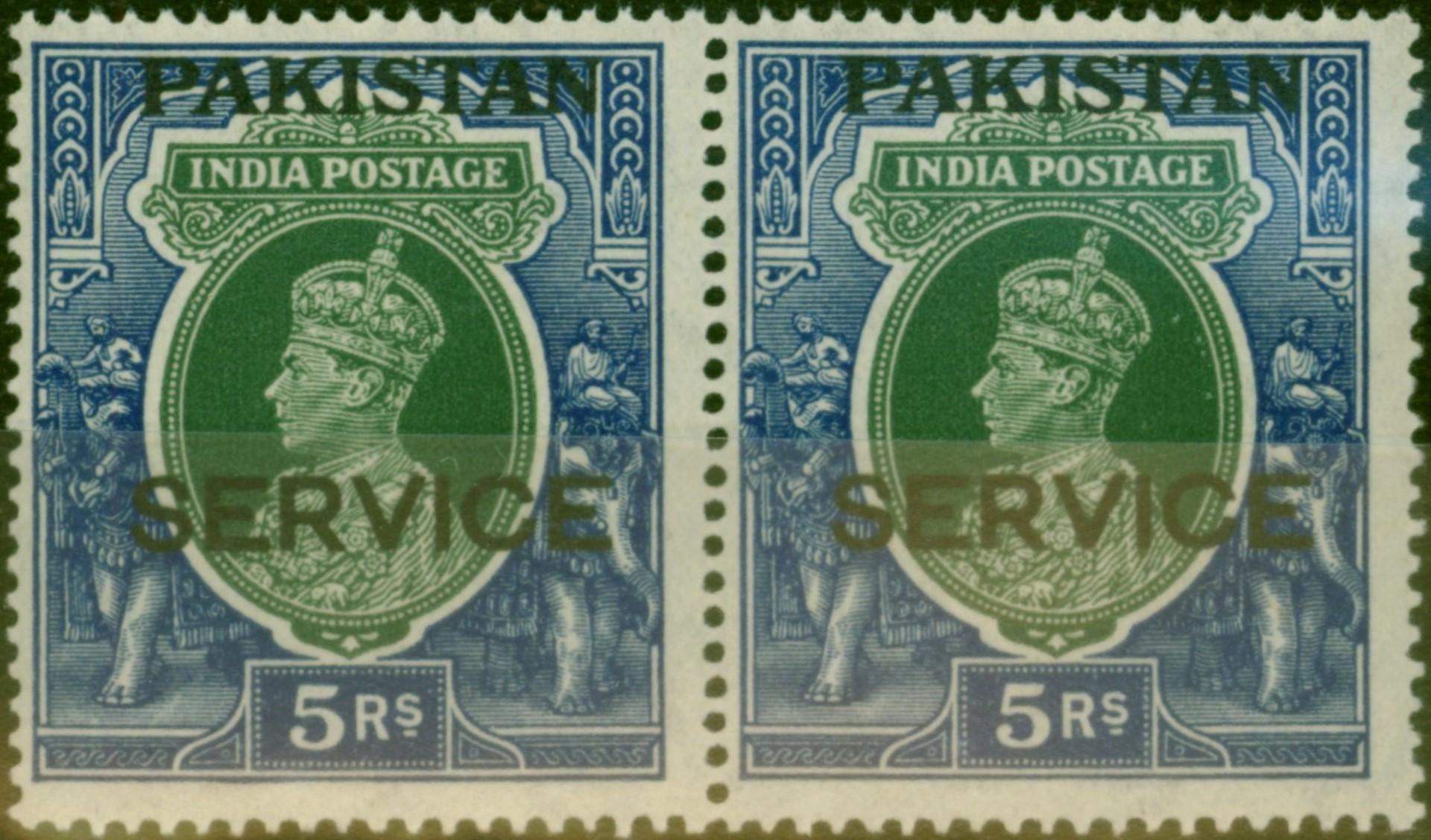 Pakistan 1947 5R Green & Blue SG012 Clear White Gum V.F MNH Pair