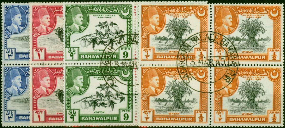 Bahawalpur 1949 Jubilee Set of 4 SG39-42 Superb Used Blocks of 4 1st Day Issue CDS