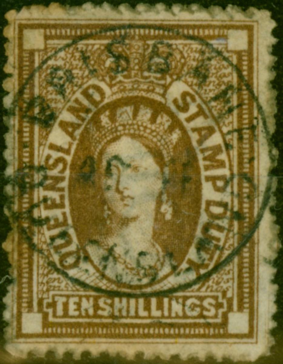 Queensland 1871 10s Brown SGF22 Good Used 'Brisbane CDS'