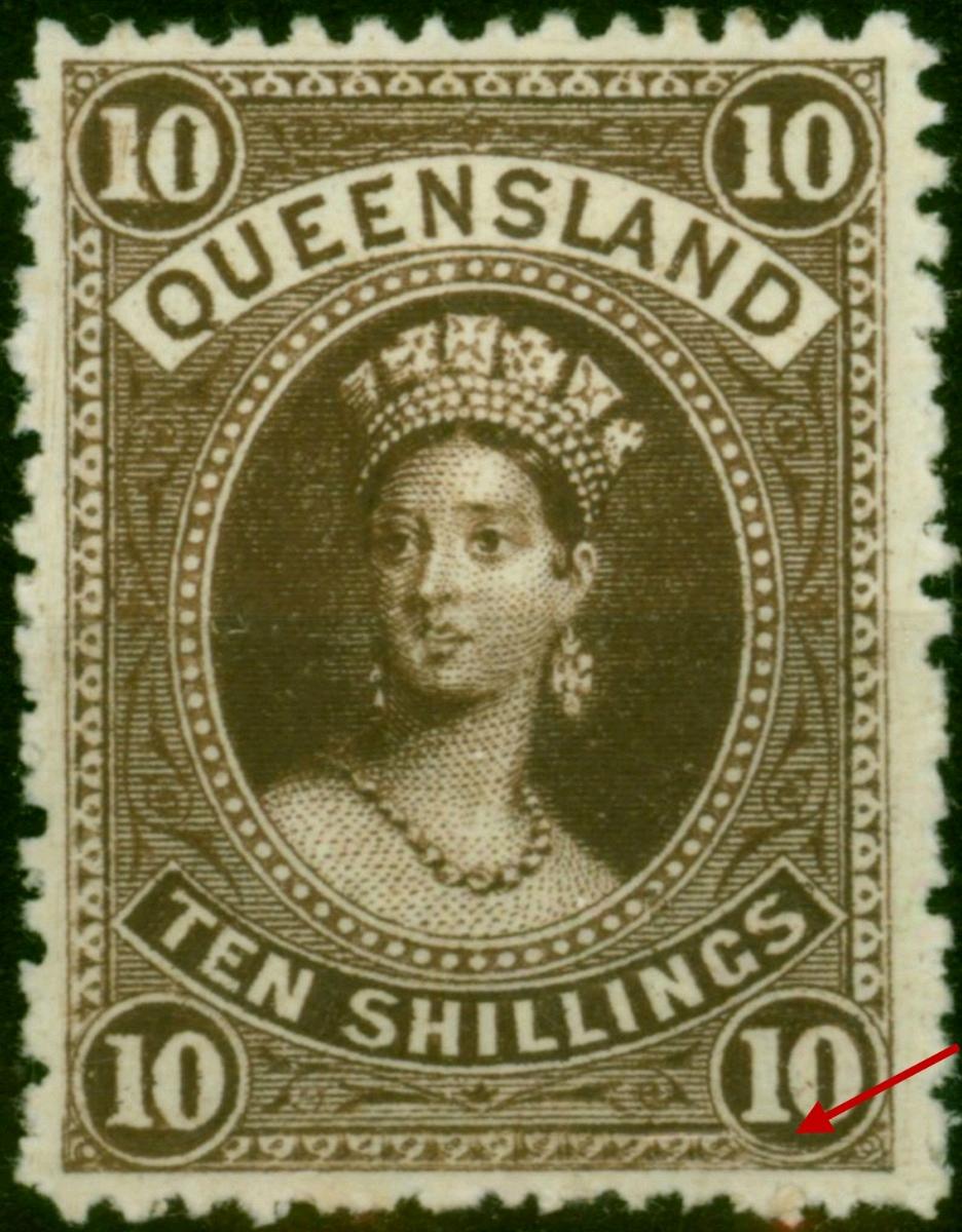 Queensland 1886 10s Brown SG160Var 'Re-Entry' Fine & Fresh MM