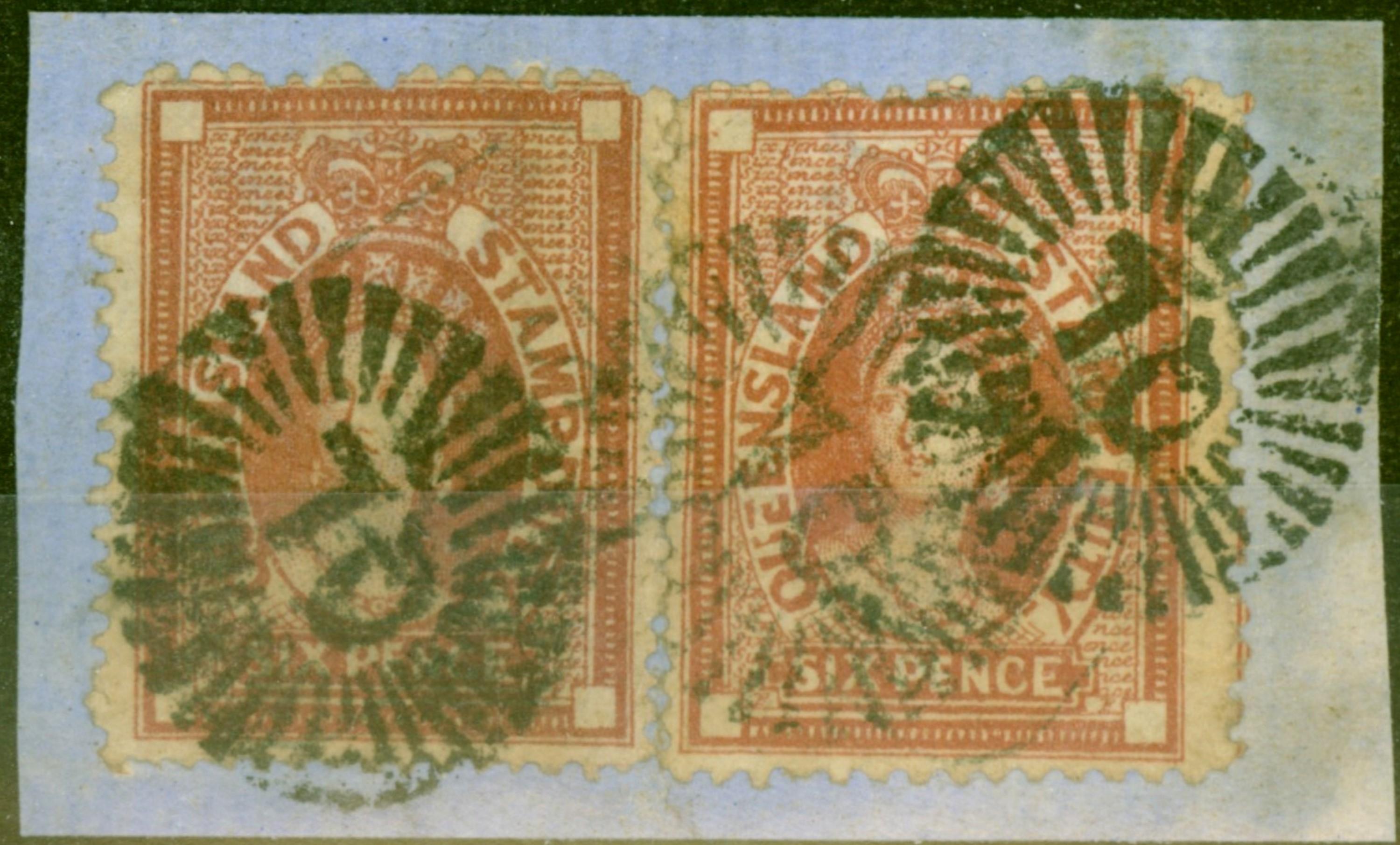 Queensland 1871 1s Green SGF18 Fine Used Pair