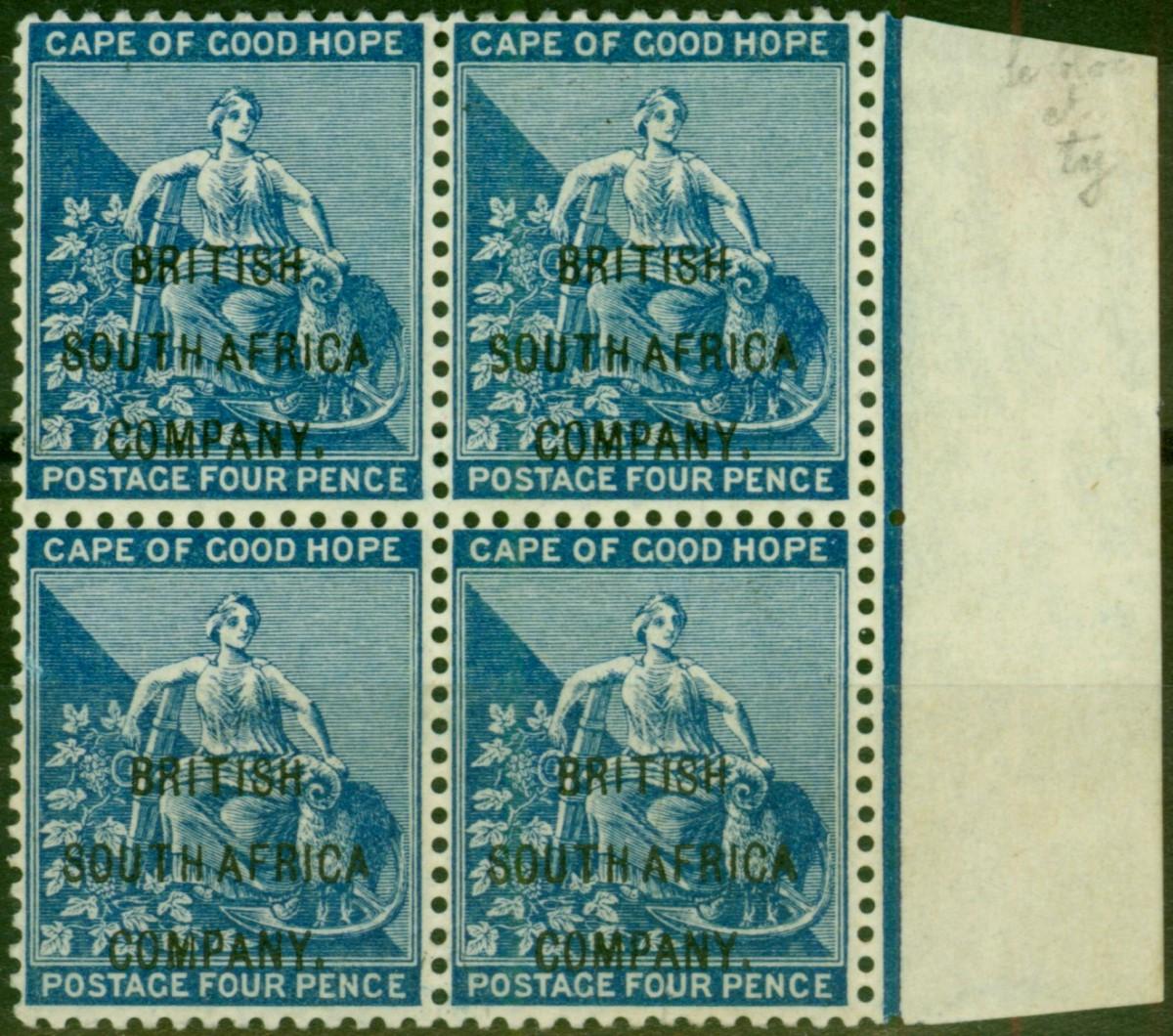Rhodesia 1896 4d Blue SG62 V.F MNH Marginal Block of 4