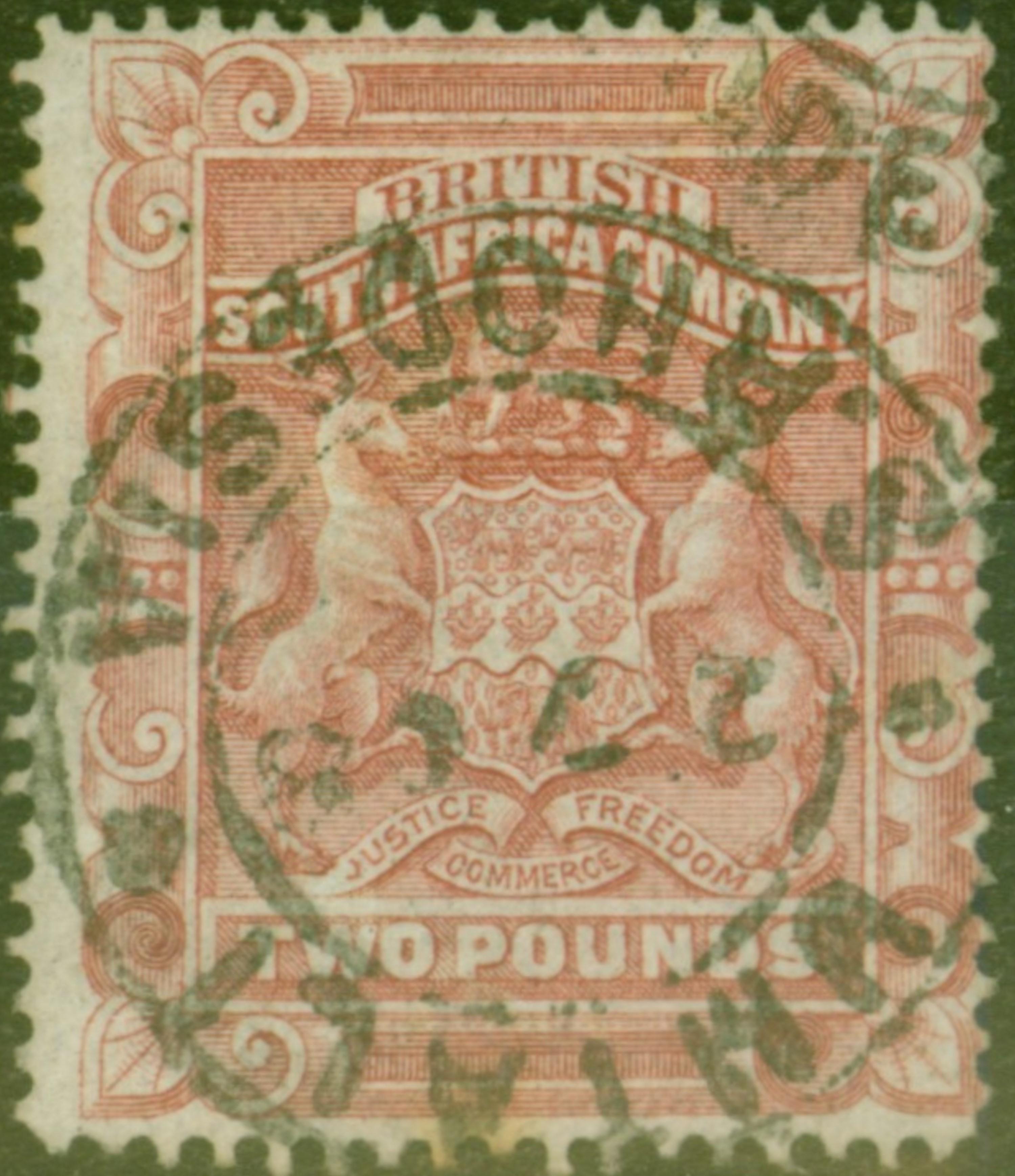 Rhodesia 1892 £2 Rose-Red SG11 Good Used