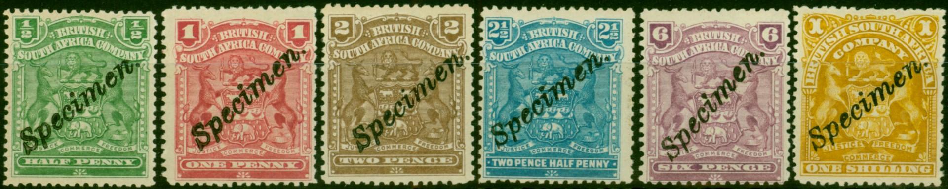 Rhodesia 1898 Specimen Set of 6 to 1s SG75a, 77, 79, 80, 83 & 84 Fine & Fresh LMM