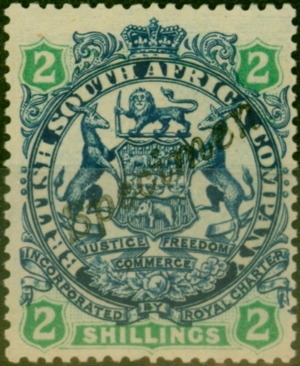 Rhodesia 1896 2s Indigo & GreenBuff Specimen SG47s V.F & Fresh LMM