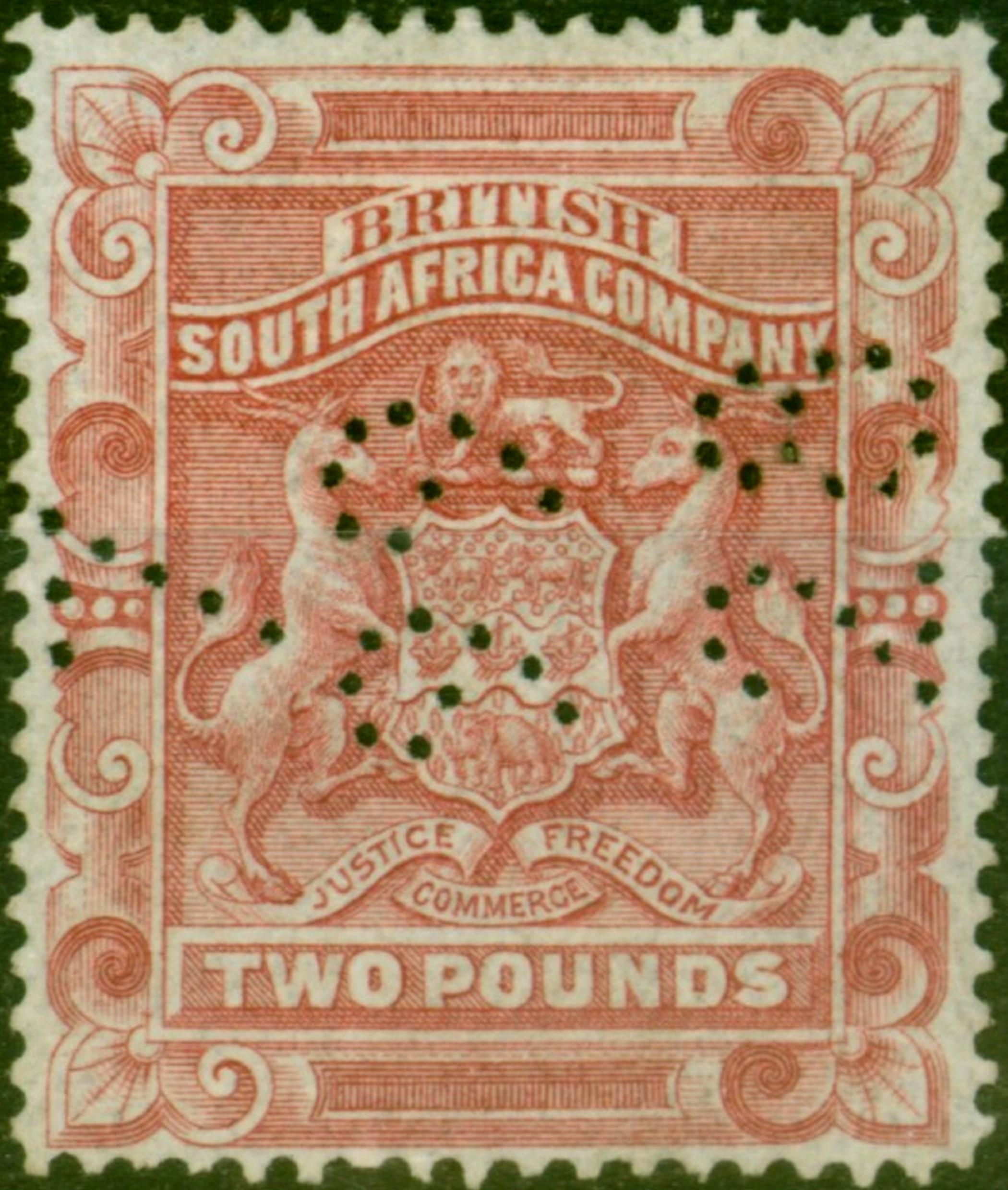 Rhodesia 1892 £2 Rose-Red SG11 Fine Unused Perfin