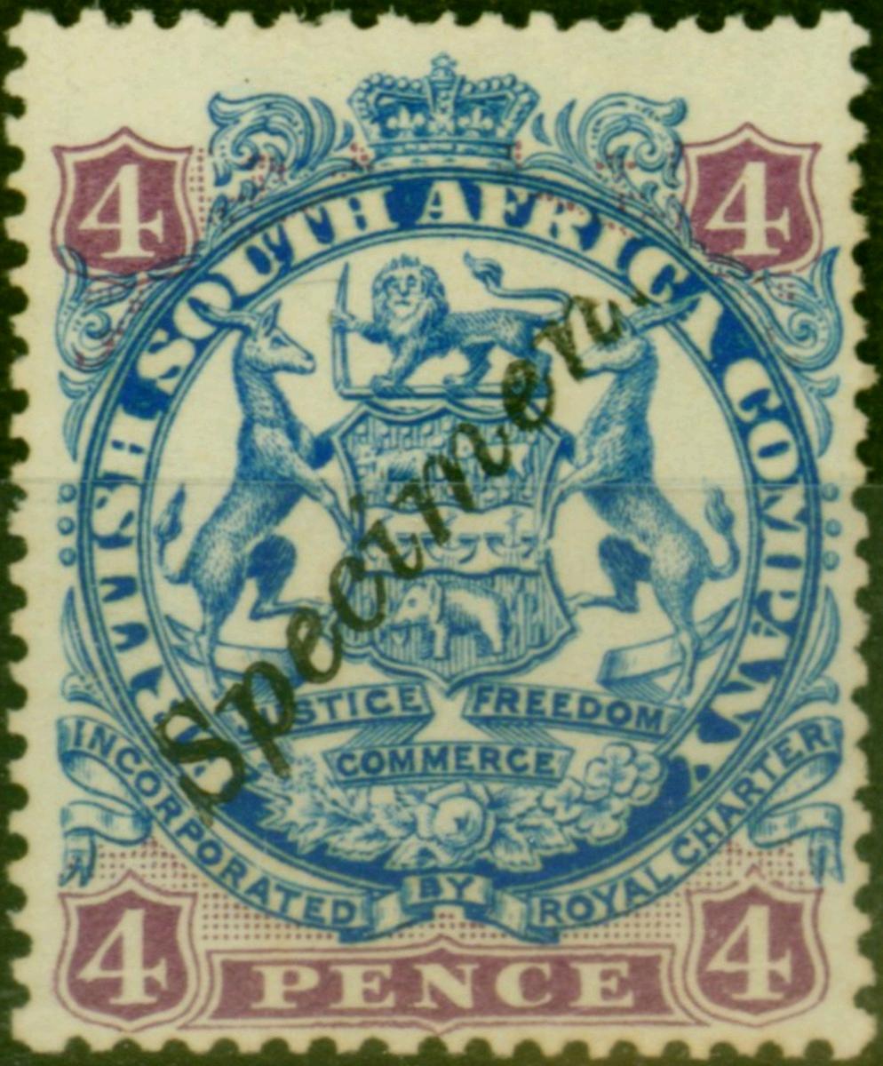 Rhodesia 1896 4d Ultramarine & Mauve Specimen SG44s V.F & Fresh LMM