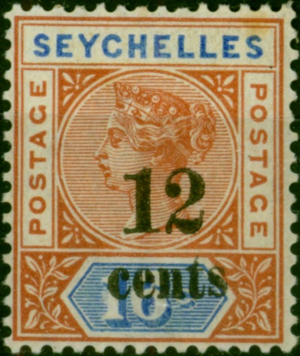 Seychelles 1893 12c on 16c Chestnut & Ultramarine SG17 Fine LMM (2)