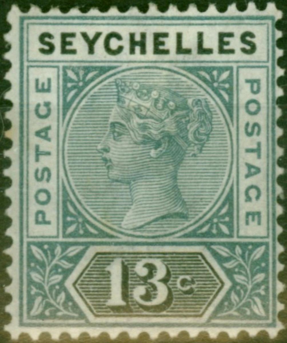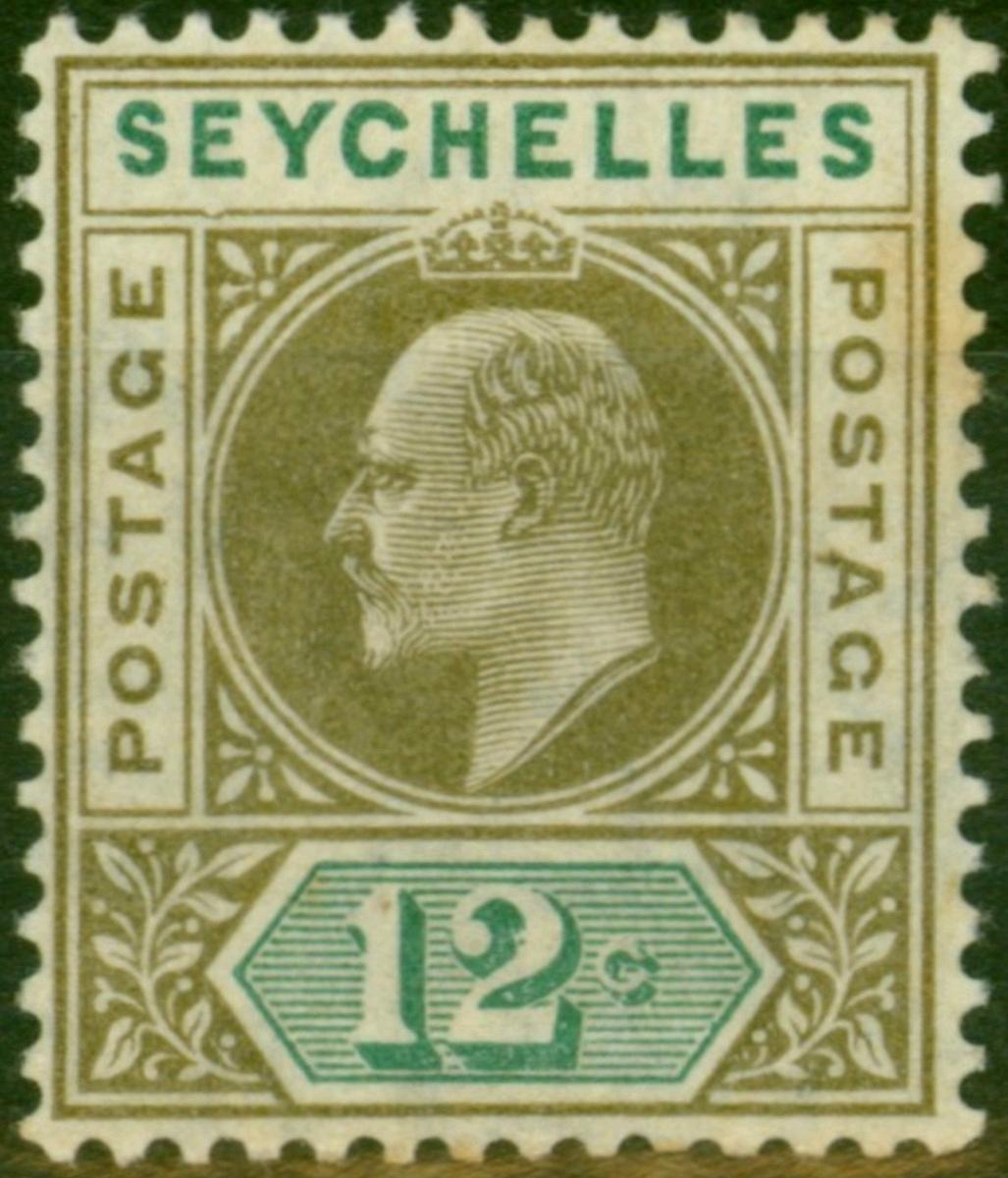 Seychelles 1906 12c Olive-Sepia & Dull Green SG63a 'Dented Frame' Good LMM