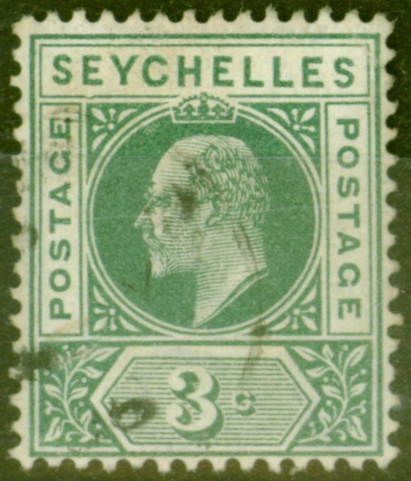 Seychelles 1903 3c Dull Green SG47a Dented Frame Fine Used