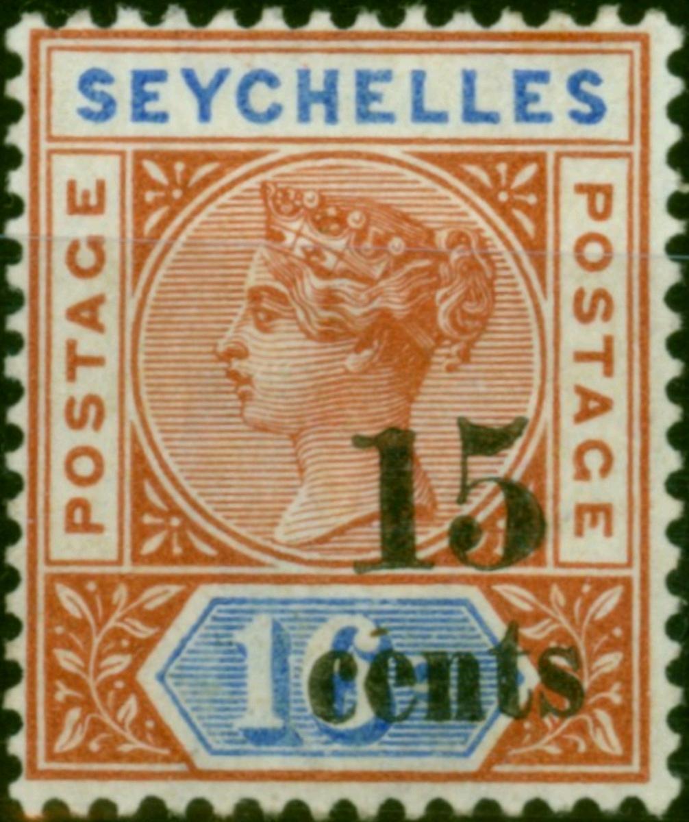 Seychelles 1893 15c on 16c Chestnut & Blue SG19 Fine MM