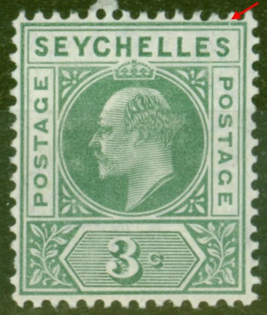 Seychelles 1912 3c Green SG72a 'Split A' Fine & Fresh VLMM
