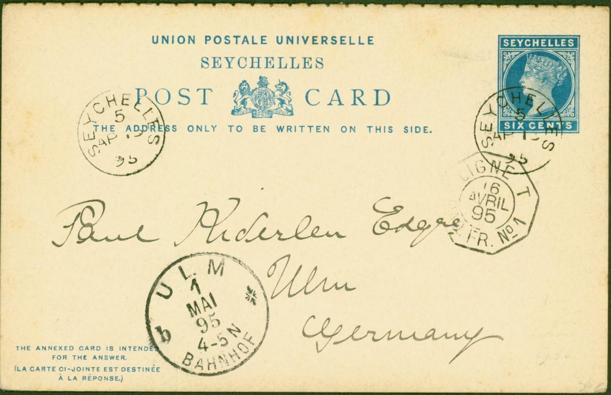 Seychelles 1895 Reply PC to Germany Fine & Attractive