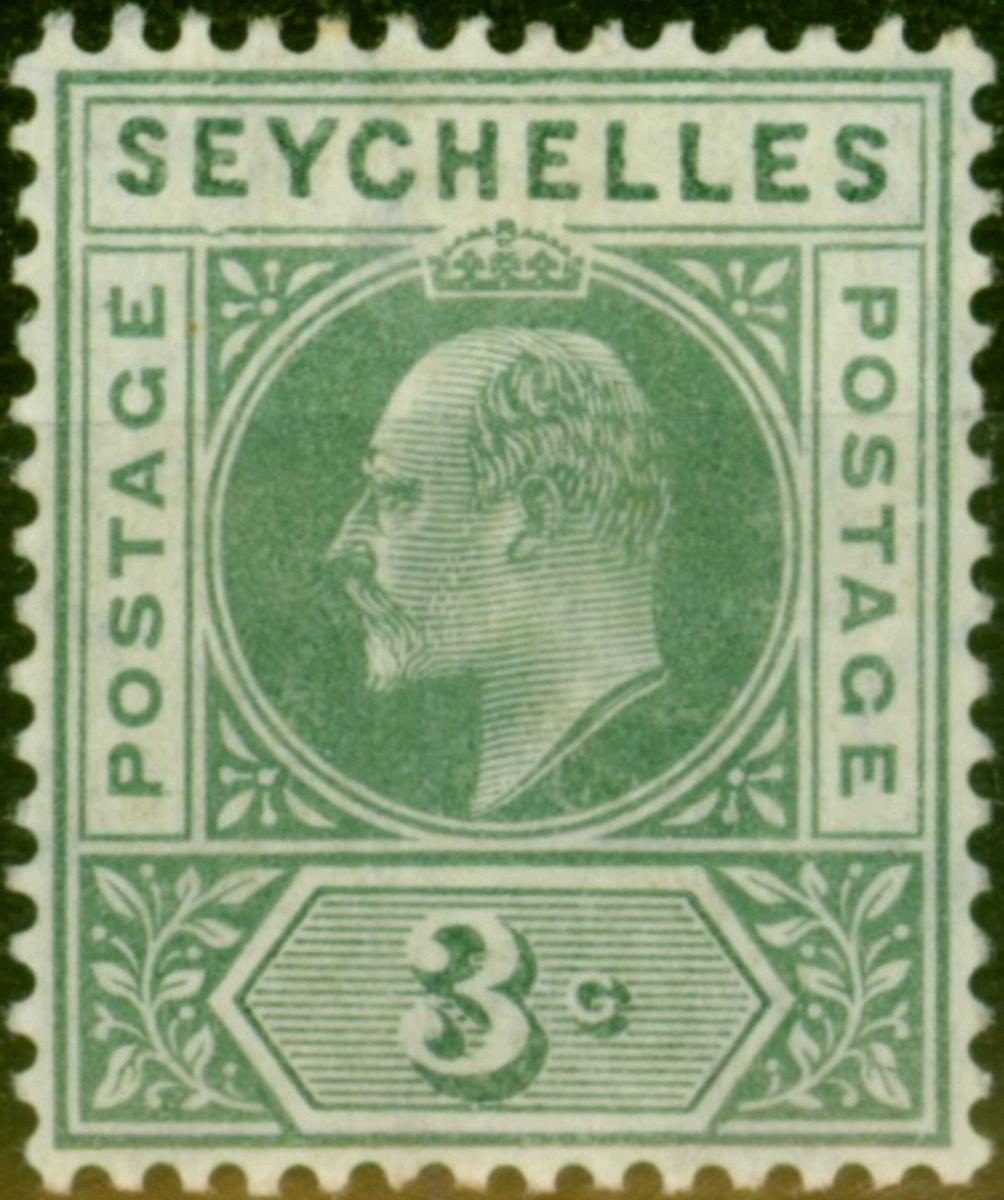 Seychelles 1906 3c Dull Green SG61a 'Dented Frame' Good MM
