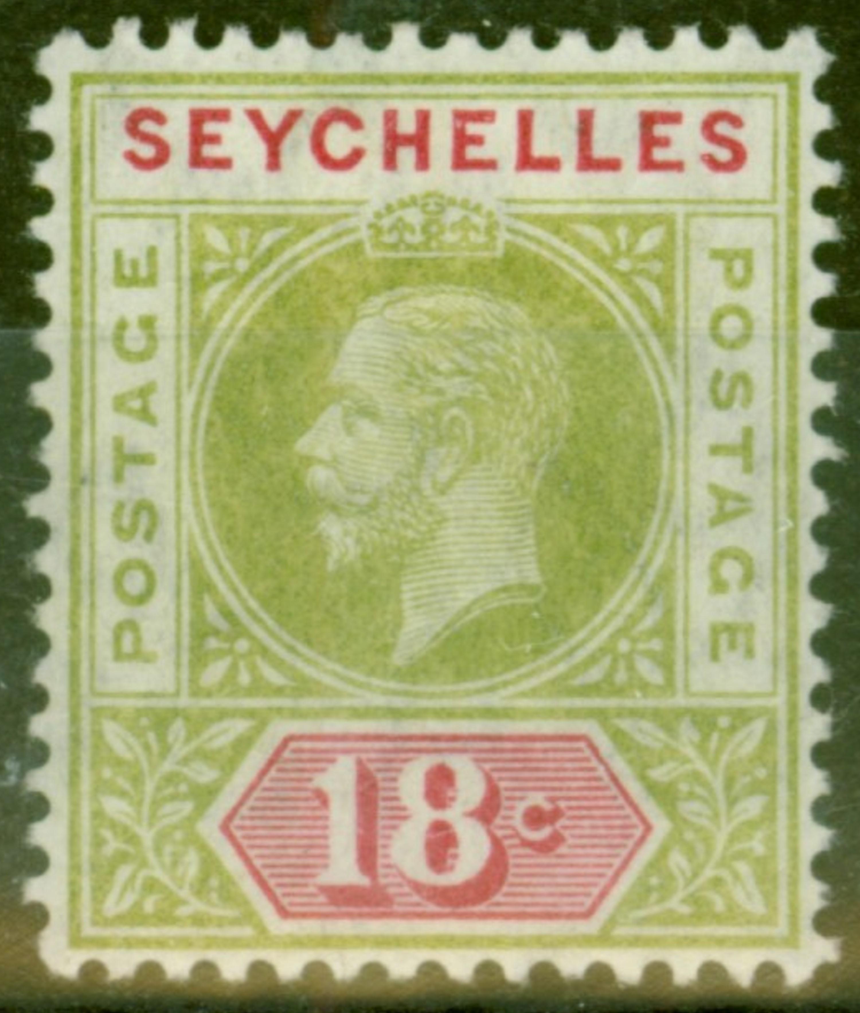 Seychelles 1913 18c Sage-Green & Carmine SG76a Split A Fine & Fresh LMM