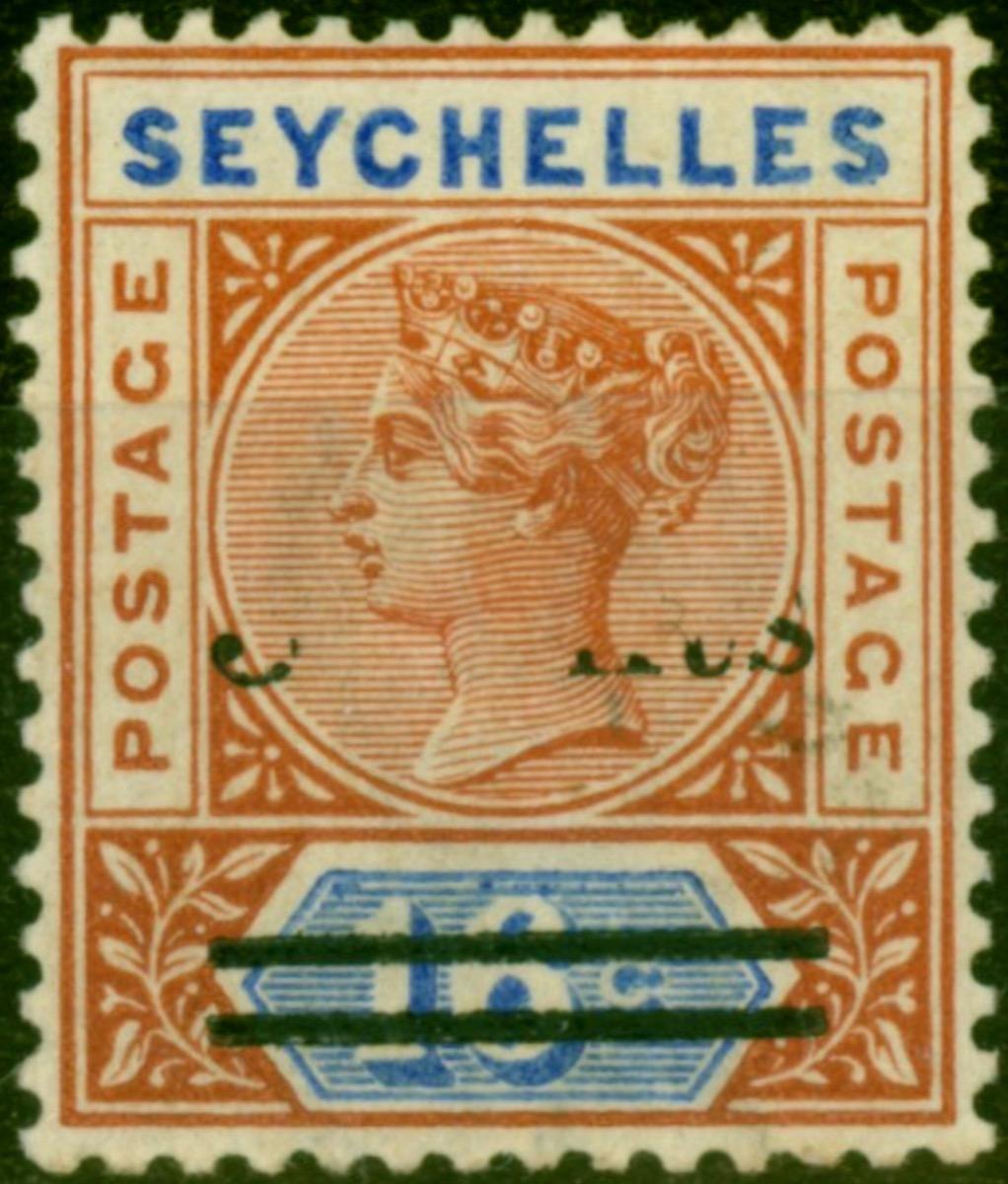 Seychelles 1901 3c on 16c Chestnut & Ultramarine SG38c '3 Cents Omitted' Good MM