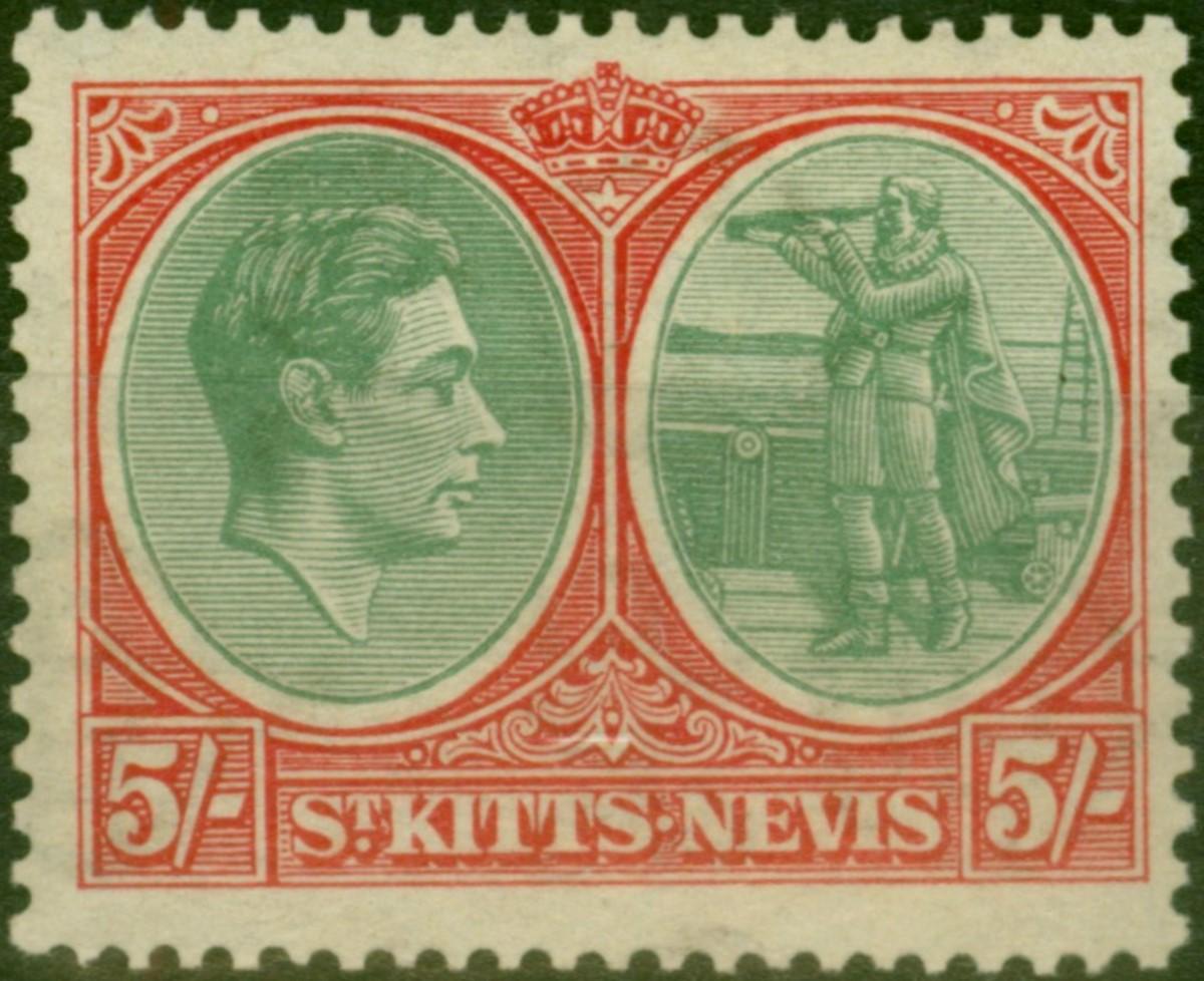 St Kitts Nevis 1938 5s Grey-Green & Scarlet SG77 Fine LMM